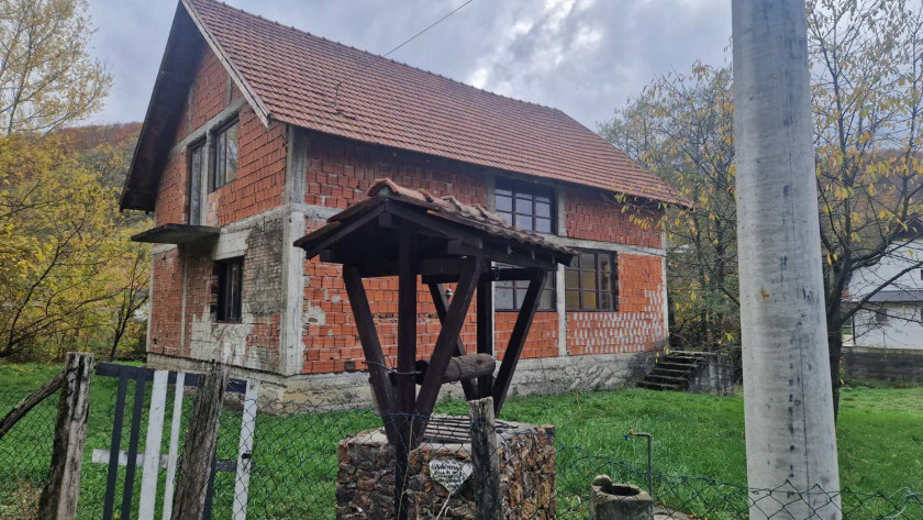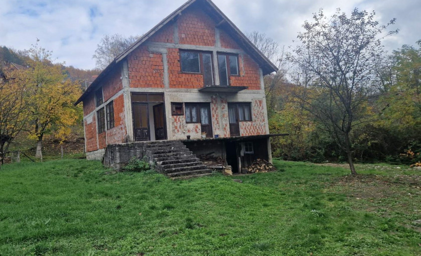 Opis: Na prodaju useljiva uknjižena kuća PR plus PK ukupne neto površine 204m2 na 5 a placa kuća se nalazi u mirnom delu Banje sastoji se od velike dnevne sobe sa kuhinjom i ostavom dve spavaće sobe ,kupatilo.Potrebna su dodatna ulaganja da bi se kuća završila.
