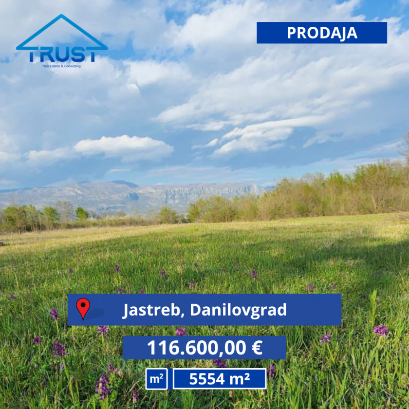 Vrsta: Prodajem Zemljište Područje: Danilovgrad Lokacija: Jastreb Cijena: €116.600 Zemljište: 5.554 m2 Čuvajte se prevara: NE vršite IBAN uplate