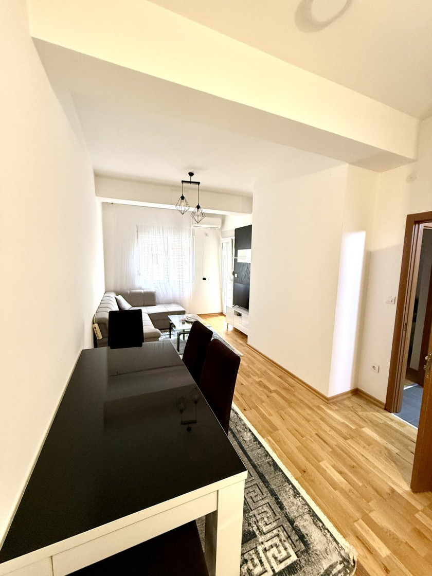 Opis: Izdaje se moderno opremljen jednosoban stan površine 45m2, na prvom spratu nove zgrade preko puta Multikoma na Zabjelu. Najam na minimum godinu dana uz obavezan depozit i prvu mjesečnu kiriju prilikom potpisivanja Ugovora o zakupu. Za više informacija obratite nam se putem vibera ili whatsappa.