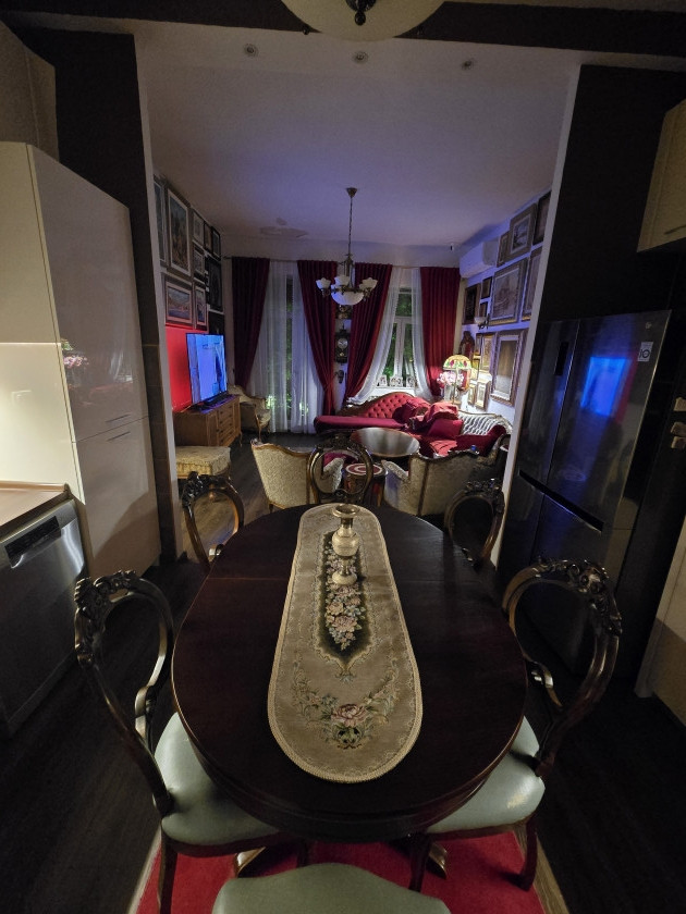Trosoban renoviran i namješten stan na prvom spratu kuće 100m2 + 25m2 + pomoćna-tehnička prostorija i 10 m² popločanog dvorišta sa pomoćnim objektom u samom centru Danilovgrada. Centralno grojanje na pelet i struju. Cijena je 179.000€.
