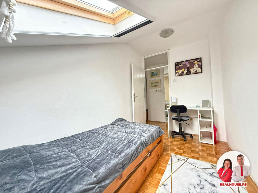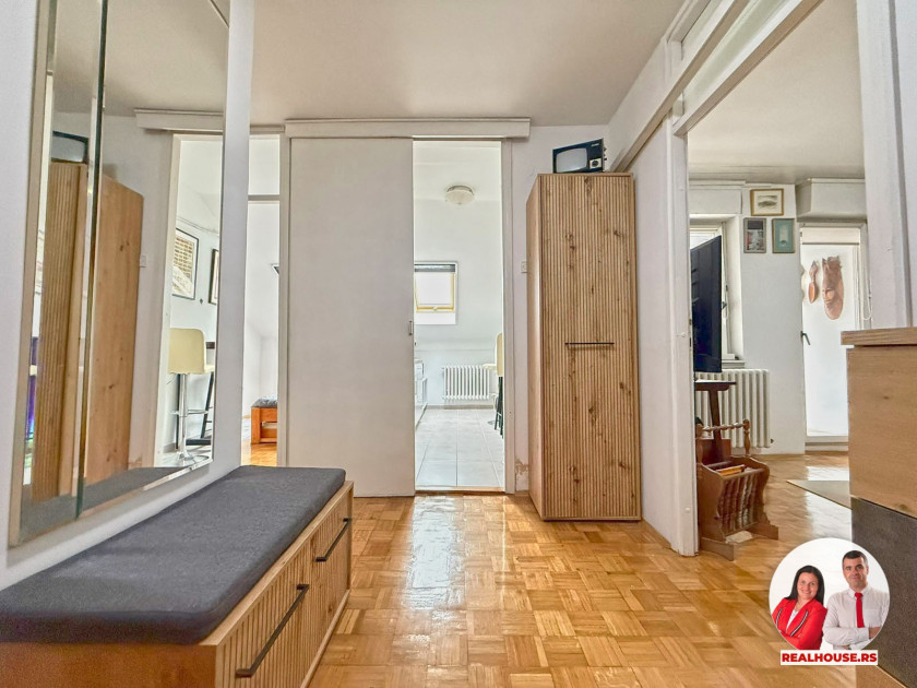 Stan je projektovan kao funkcionalna celina— svaka prostorija ima smisao, od velikog centralnog predsoblja koje vodi u sve delove stana, do potpuno odvojene kuhinje, spavaće sobe u kojoj po potrebi staje i bračni krevet i kupatila sa ležećom kadom i prostorom za veš mašinu. Veliki plakar u hodniku mesto je za garderobu, odlično uklopljen u sam prostor.