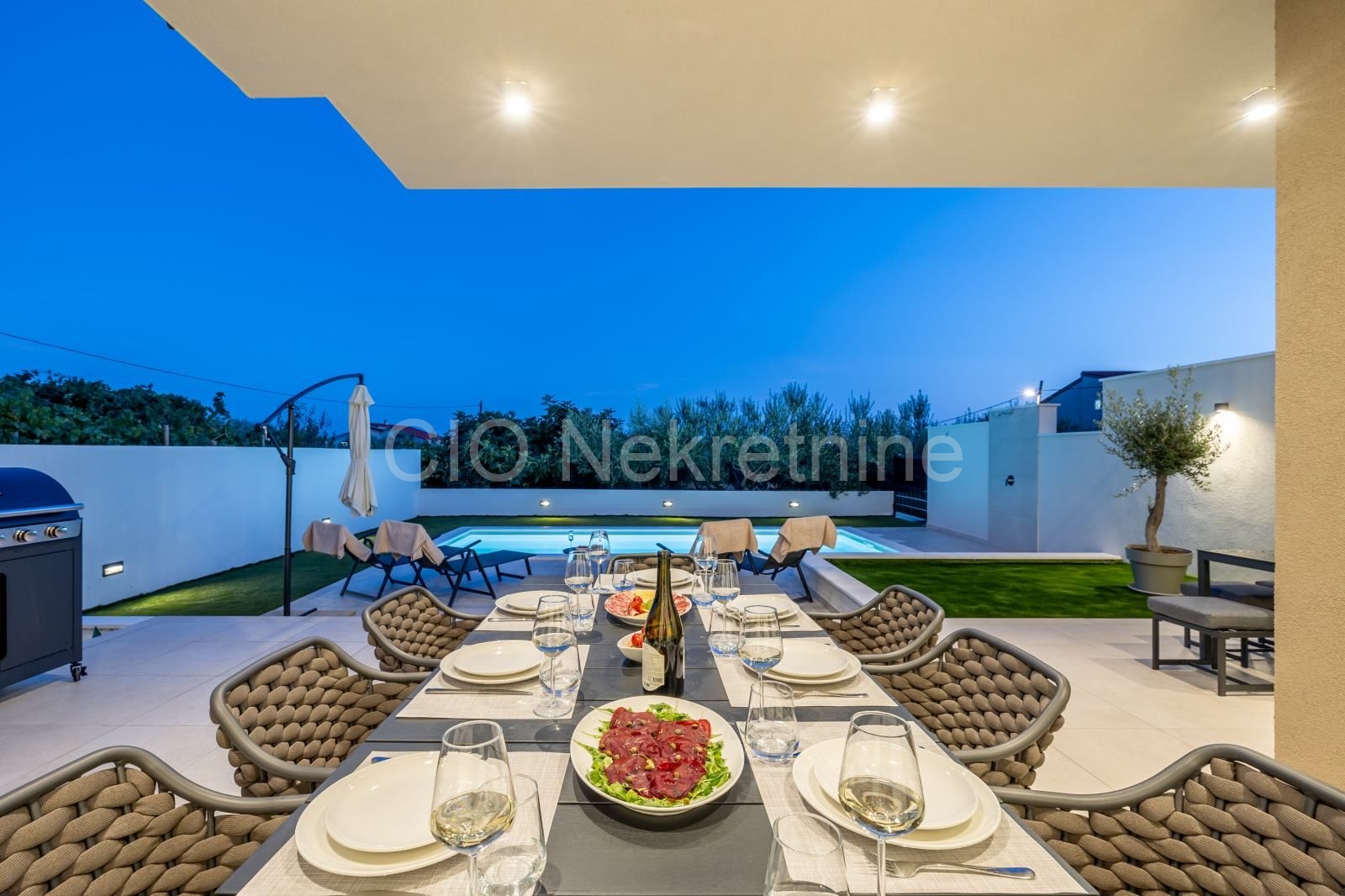 Ova elegantna vila površine 275 m² smještena je u mirnom okruženju, a istovremeno u blizini svih potrebnih sadržaja za ugodan i kvalitetan život.