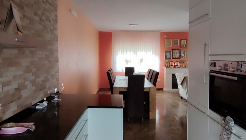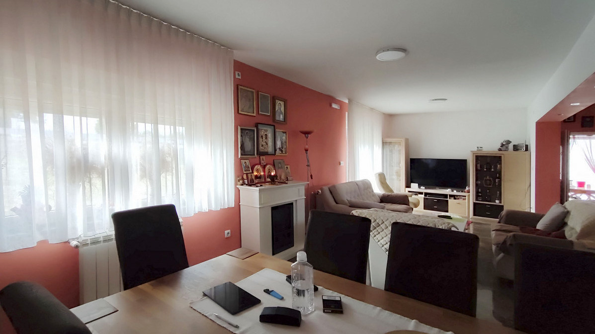 Opis: Na prodaju je moderna porodična kuća površine 206 m², izuzetno kvalitetno građena i potpuno renovirana, sa solarnim panelima, sistemom grejanja na pelet i velikim, uređenim placem.