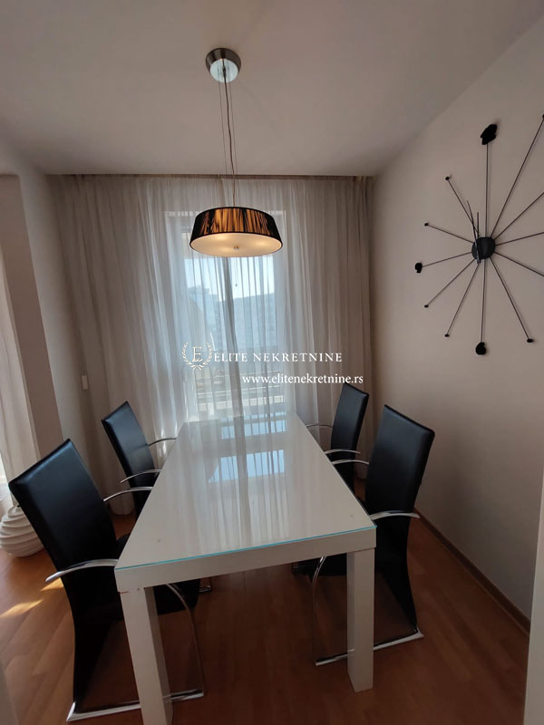 Opis: Dvosoban luksuzno namesten stan u Naselju Belville kod Delta City-a . Stan je apartmanski opremljen. Prostan i svetao dnevni boravak sa izlaskom na terasu, trpezarija, kuhinja, spavaca soba, kupatilo.