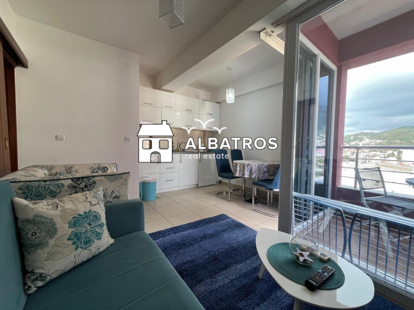 Opis: Izdajem jednosoban stan od 35m2 u naselju Ilino na 7om spratu u relativno novoj zgradi sa liftom. Zgrada ima svoj privatni zagradjeni parking i skoro stalno ima slobodnih mesta. Stan se izdaje namjesten kao na slikama i ima odvojenu spavacu sobu i mali balkoncic sa prelijepim pogledom na planine i sa strane na more.