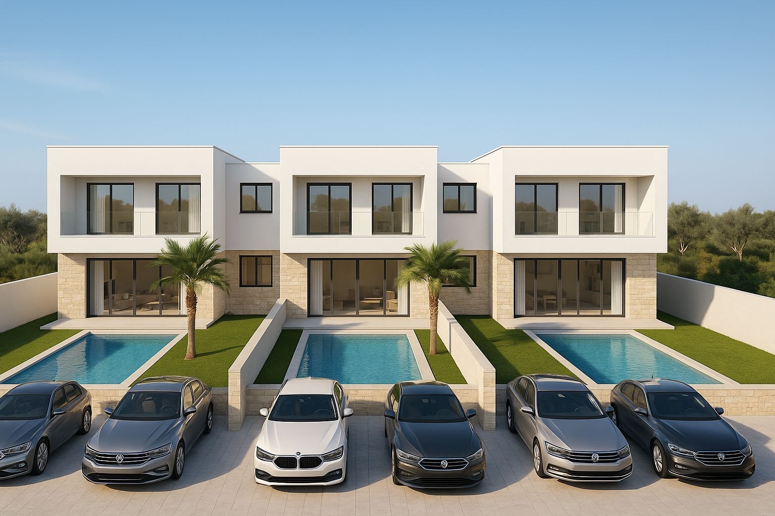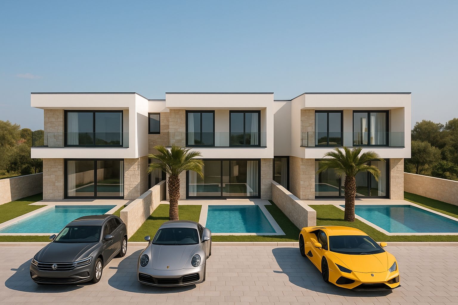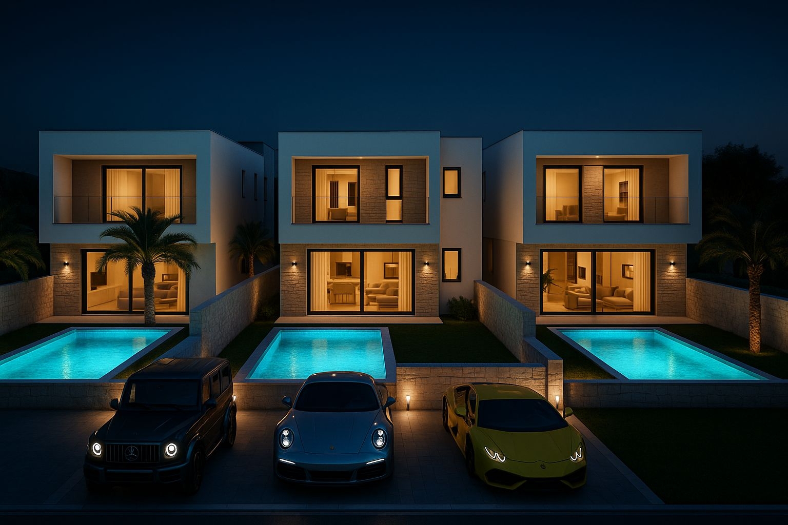 Opis (Engleski): On the island of Pag, in the town of Novalja, an excellent building plot of approximately 1,250 m² is for sale, just 500 metres from the sea. The property is situated in a quiet and desirable location with a beautiful sea view and includes a valid building permit and a complete project plan for the construction of three modern villas with swimming pools. This ready-to-build status significantly simplifies and speeds up the construction process.The plot is part of a larger development project with an existing approved plan for a multi-family residential building, which can easily be adapted to three contemporary townhouse-style villas, each with its own private garden, terrace, and swimming pool. Any modification of the project is straightforward since valid permits and infrastructure plans are already in place, including access roads, water, electricity, and wastewater connections.The property enjoys an excellent position within Novalja, one of the most popular destinations on the island of Pag....