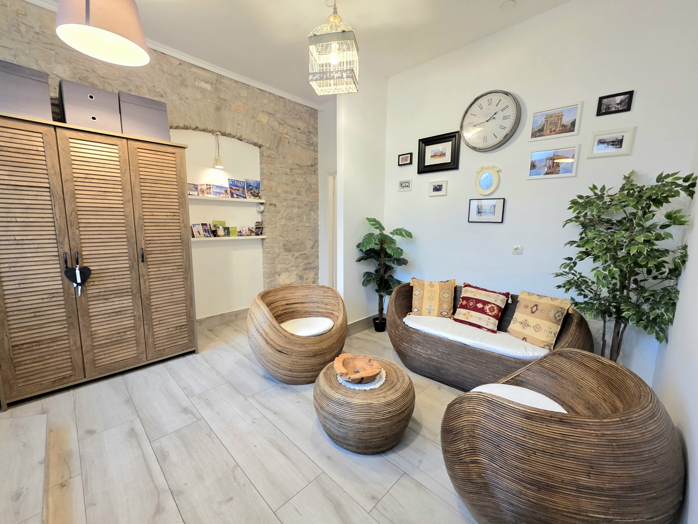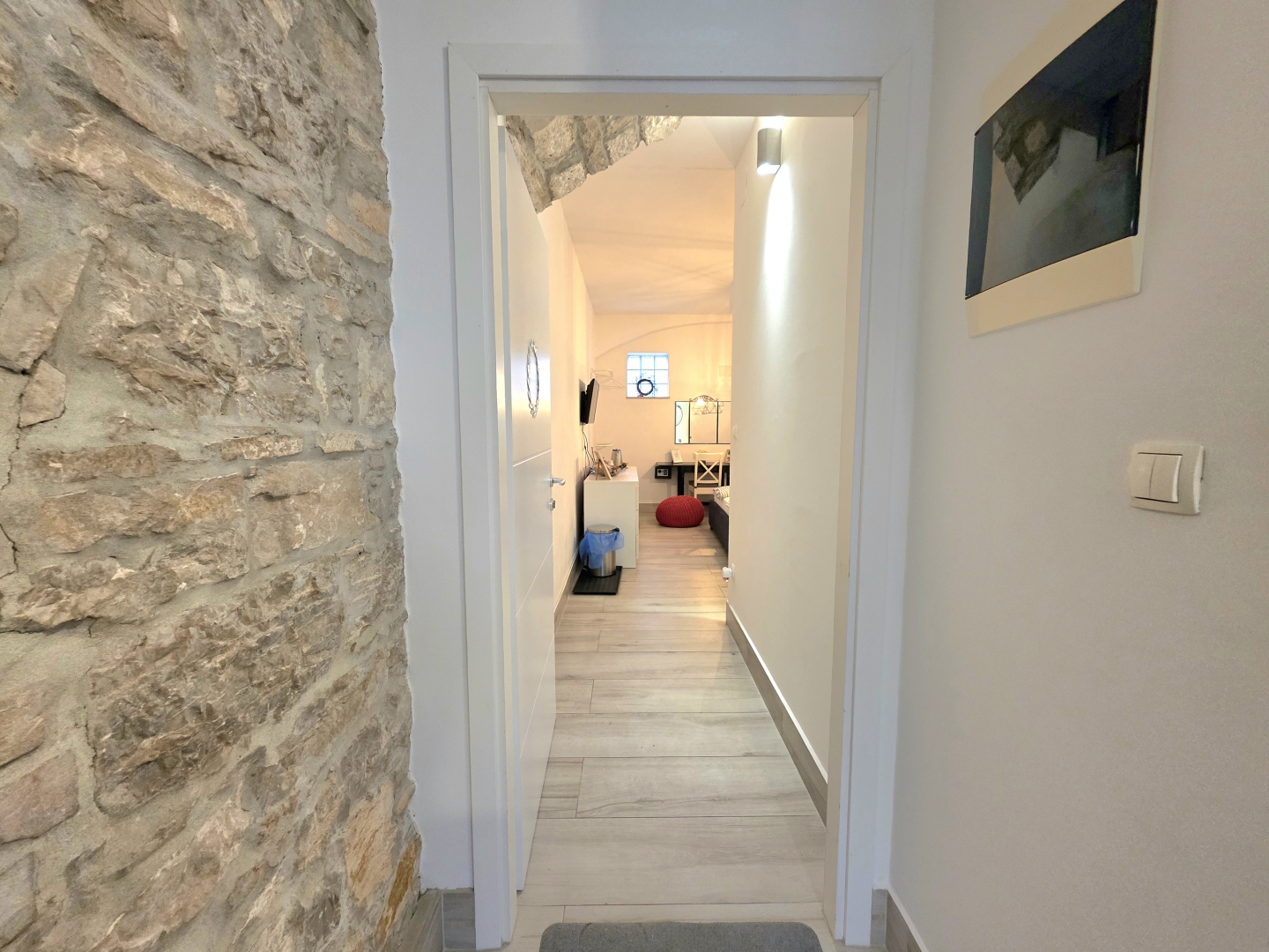 Opis (Engleski): In the very heart of historic Pula, just 2.5 km from the sea, lies this beautifully renovated apartment on the ground floor of a charming Austro-Hungarian building. Surrounded by picturesque streets, cultural landmarks, and the vibrant atmosphere of the old town, the property perfectly blends historical elegance with the comfort of modern living. The apartment has its own private entrance, offering full privacy and a touch of exclusivity in the city centre.The total living area of the apartment is 58.68 m², and the interior has been thoughtfully designed to ensure maximum functionality and flexibility. The entrance area opens into a space currently arranged as a lounge and social zone, which can easily be transformed into a bright open-plan living room with a kitchen and dining area, creating an ideal environment for relaxation and entertaining.The apartment includes two spacious bedrooms, each with its own bathroom, ensuring privacy and comfort....
