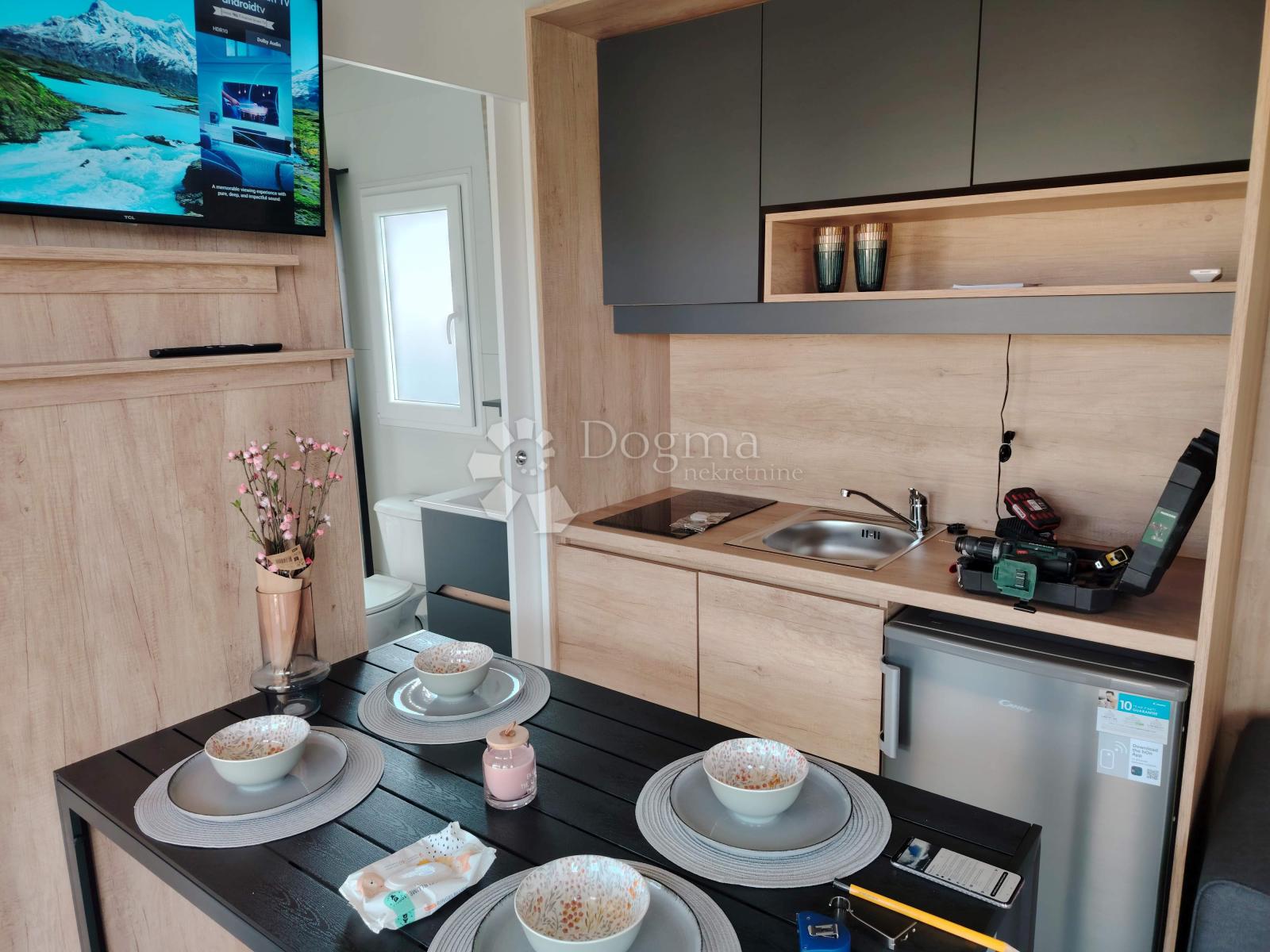 U potpunosti namještena, u dnevnoj sobi se nalazi 50" smart TV, klima uređaj i udoban dvosjed.., kuhinja sa perilicom rublja i velikim frižiderom.. U spavaćoj sobi se također nalazi 50" smart TV. Sve od navedenoga je uključeno u cijenu od samo 57.000 EUR.