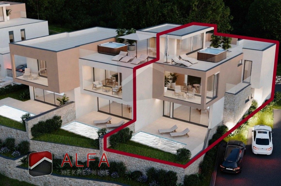Opis: Vodice, prodaje se troetažan stan na kraju nove moderne kuće u nizu, udaljene 800 metara od mora.
