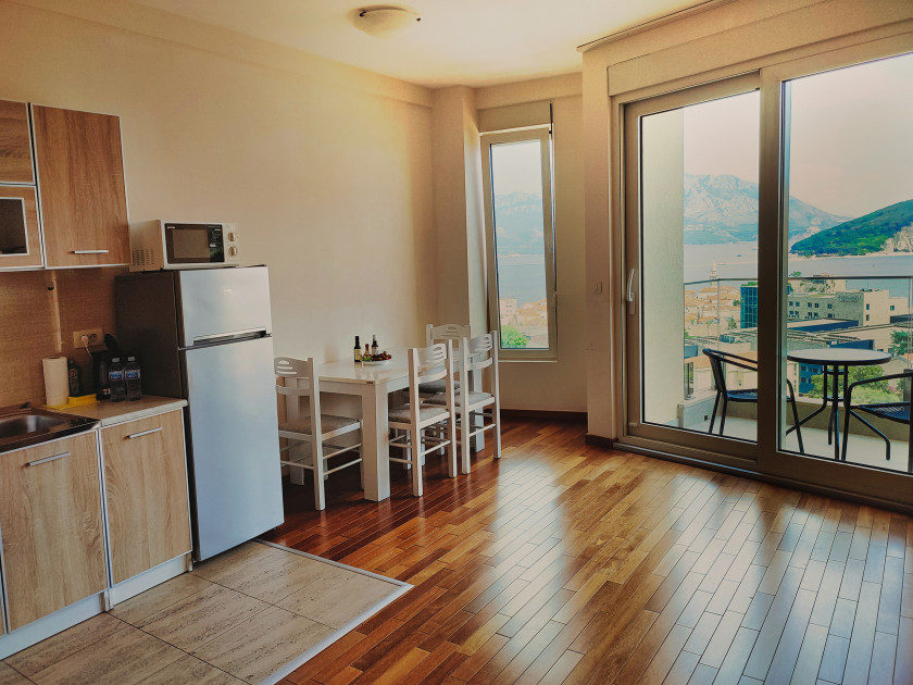 Opis: Prostran, svetao stan sa prekrasnim panoramskim pogledom. Stan sa odvojenom spavaćom sobom od 55 m² nalazi se na 2 spratu moderne zgrade. Sa balkona i panoramskih prozora dnevnog boravka otvara se neverovatan pogled na more, stari grad i ostrvo Svetog Nikola. Stari grad, centar i setaliste udaljeni su oko 15 minuta peske. Na pješačkoj udaljenosti nalazi se restoran visoke klase sa panoramskim pogledom na Budvu – Vista. Stan se prodaje kompletno namješten. Odličan potencijal za iznajmljivanje.