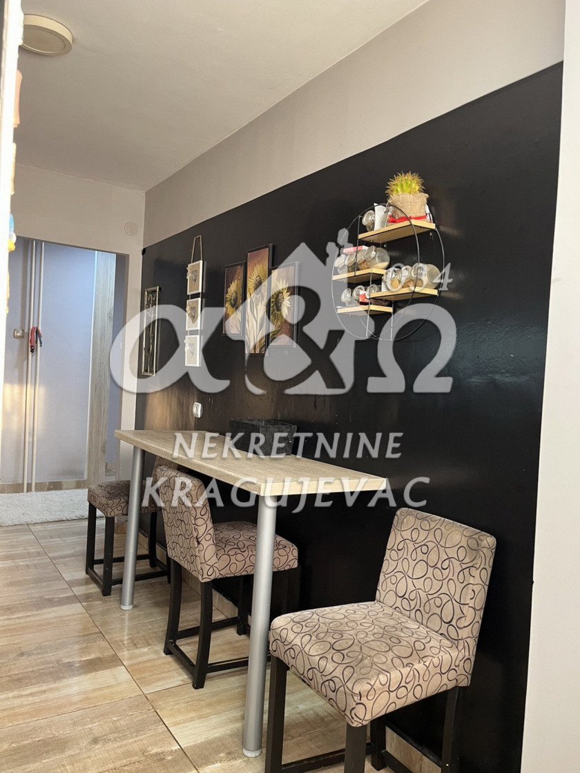 Opis: Renoviran trosoban stan od 66m2 na Aerodromu sa veoma lepim pogledom. Struktura: hodnik, kupatilo, dnevni boravak sa trpezarijom koji izlazi na veliku terasu, izdvojena kuhinja, dve spavaće sobe. Deveti sprat, nije poslednji, u zgradi sa dva lifta. Centralno grejanje. Odlična lokacija, u neposredoj blizini škole i obdaništa. Idealno za porodice. Šifra oglasa: 1402-1