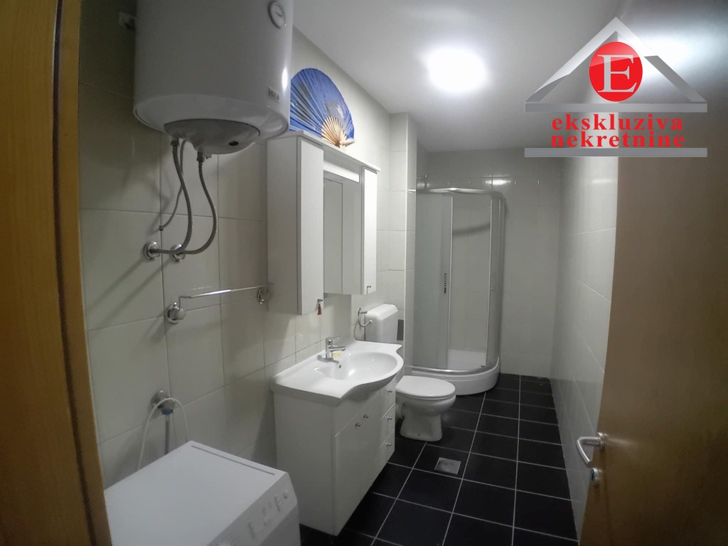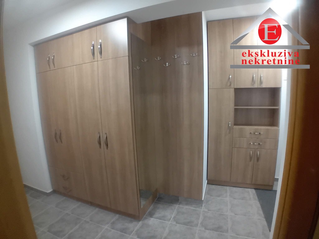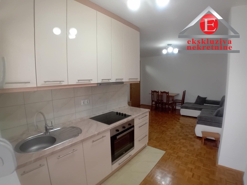 Opis: Jednoiposoban stan površine 52 m2 na III spratu kvalitetne nove gradnje. Sastoji se od dnevnog boravka, kuhinje sa trpezarijom koja ima izlaz na prostranu terasu, spavaće sobe, hodnika, ostave i kupatila. Opremljen je PVCstolarijom sa roletnama, centralnim etažnim grijanjem, kvalitetnim pasrketima, keramikom i sanitarijama. Prodaje se sa kompletnim namještajem.