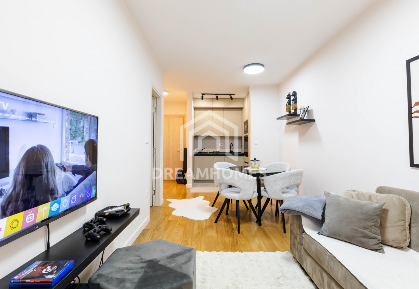 Stan je uređen sa pažnjom na detalje, kombinacijom komfora i modernog dizajna. Odlikuje ga odlična povezanost sa svim važnim sadržajima — u neposrednoj blizini nalazi se šoping centar Big Fashion, restorani, kafići, marketi i poslovni objekti.
