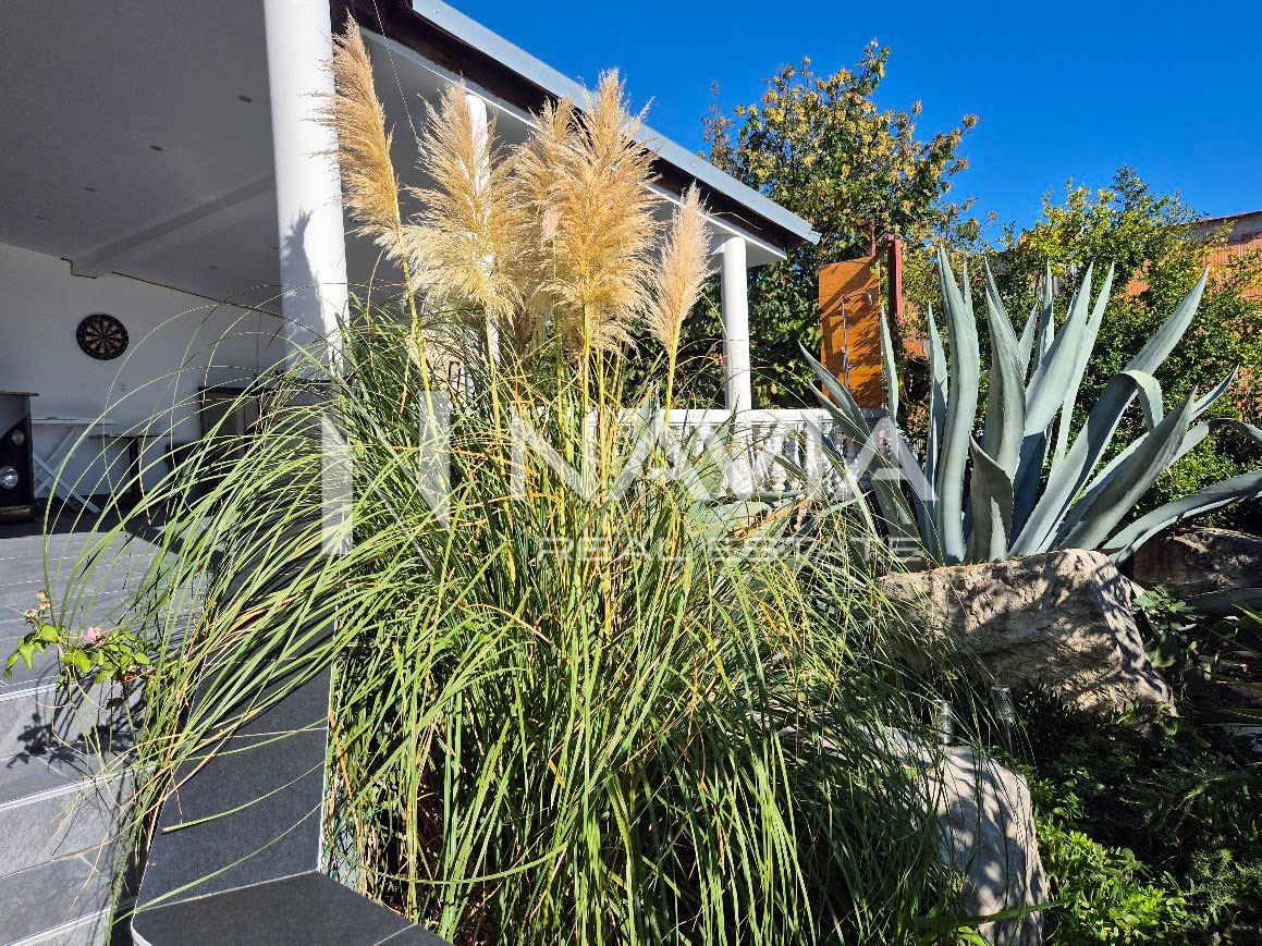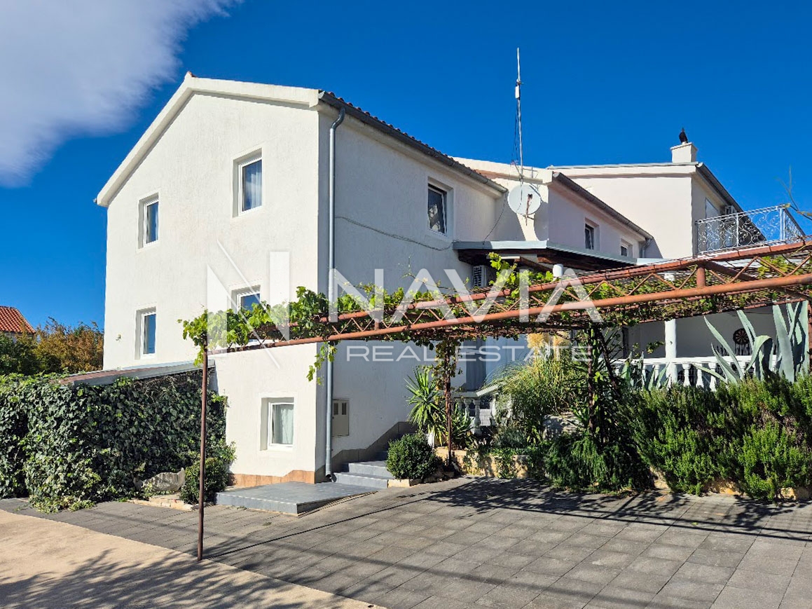 Na visokom prizemlju smješten je prostrani stan koji se sastoji od četiri spavaće sobe, dnevnog boravka, kuhinje s blagovaonicom, dvije kupaonice te velike terase s koje se pruža otvoren pogled na more. Na terasi je smješten roštilj i uređen je ugodan prostor za druženje, što ovu nekretninu čini savršenom za obiteljska okupljanja i opuštanje tijekom toplih ljetnih mjeseci. Na katu kuće nalaze se dva potpuno opremljena dvosobna apartmana, svaki s dvije spavaće sobe, vlastitom kuhinjom, dnevnim boravkom i kupaonicom.