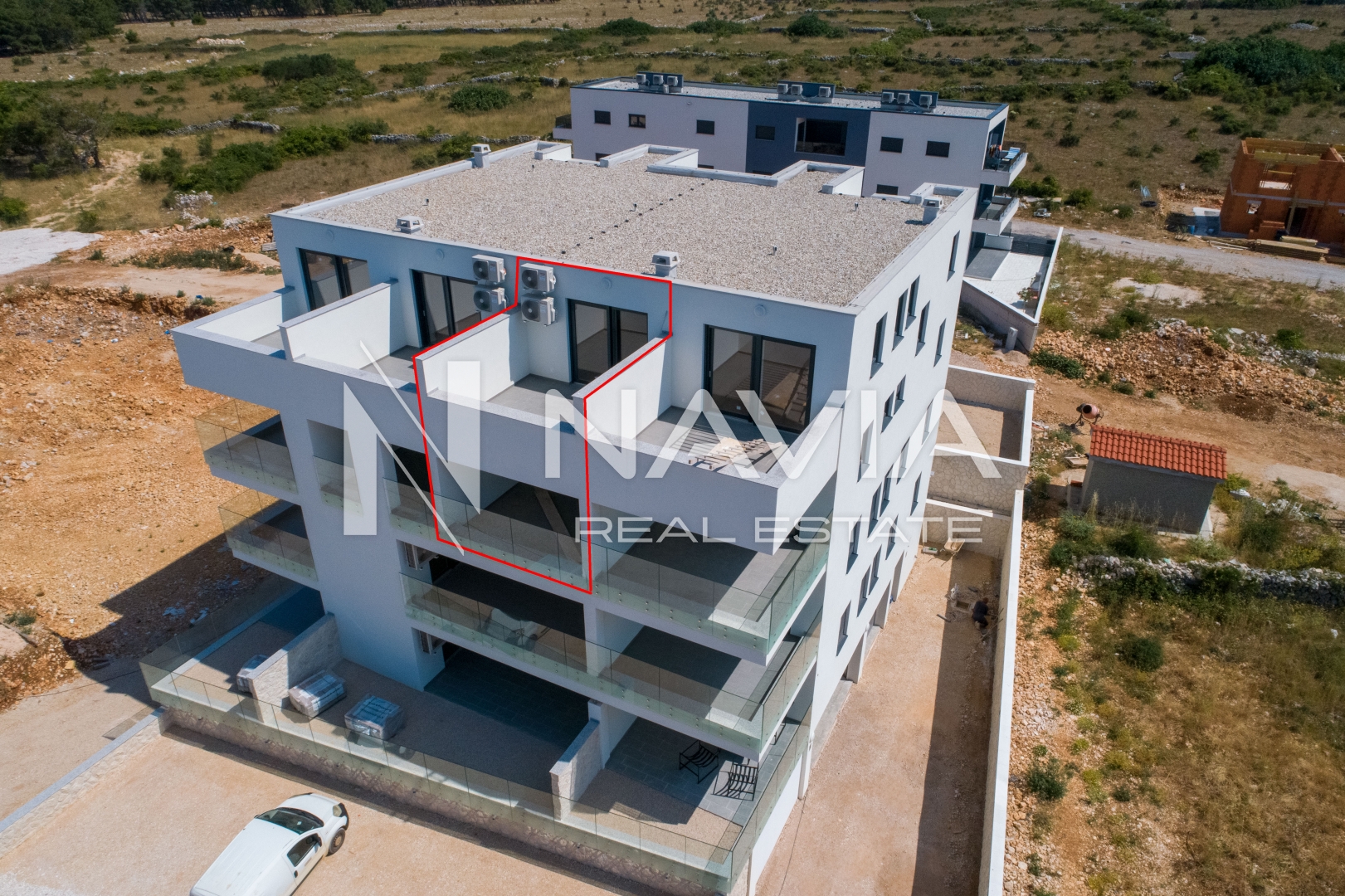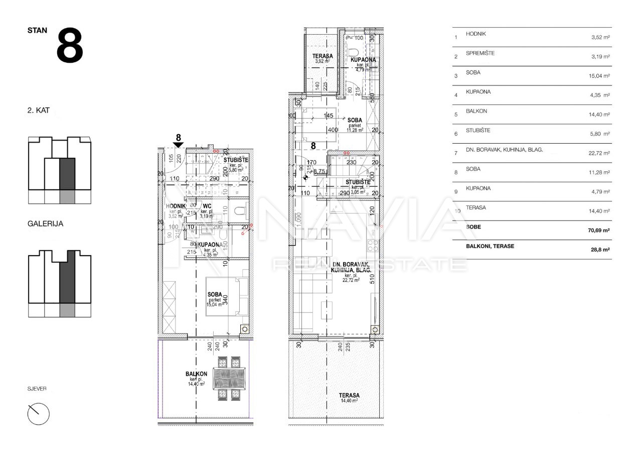 Opis: Na drugom katu moderno dizajnirane zgrade u Povljani prodaje se atraktivan stan s galerijom, ukupne površine 85,36 m², udaljen samo 250 metara od mora.