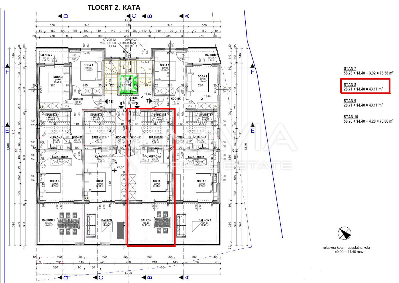 balkona (14,40 m²)