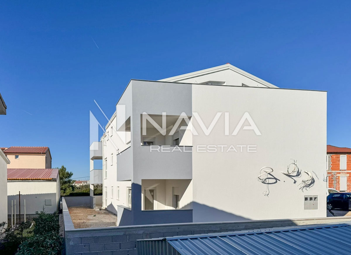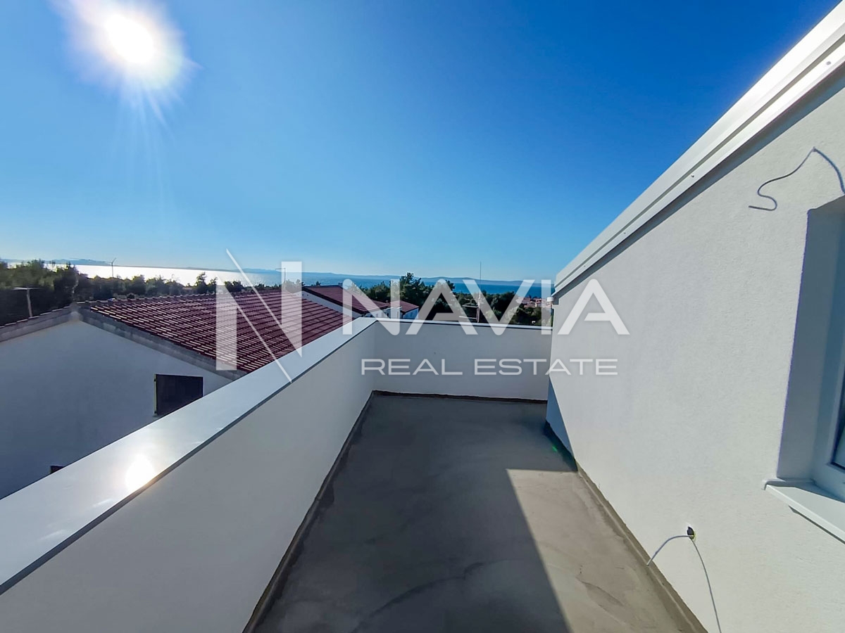 Opis: Prodaje se prostrani stan veličine 50,16 m2 u novogradnji, smješten u potkrovlju na drugom katu zgrade. Stan se sastoji od spavaće sobe površine 10,80m2, kuhinje, blagovaone i dnevnog boravka 32 m2, kupaonice 3,29 m2, te terase površine 20 m2 s koje se pruža prekrasan pogled na more.