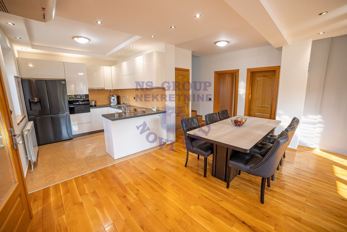Opis: Na 10-15 minuta lagane vožnje od centra Novog Sada, a svega 3 minute od Petrovaradina, prodaje se prelepa, moderno uređena i potpuno nameštena kuća u mirnom delu Petrovaradina, površine 324 m², na uređenom placu od 1000 m². Ova prostrana i svetla porodična kuća prostire se na četiri etaže – podrum, prizemlje, sprat i potkrovlje i nudi savršen spoj komfora, elegancije i funkcionalnosti. Prizemlje krasi veliki, svetao dnevni boravak sa moderno opremljenom kuhinjom, trpezarijom, master soba sa svojim kupatilom i ostava. Na spratu se nalaze tri komforne spavaće sobe, prostrano kupatilo, wc i vešeraj. Potkrovlje je u sirovom stanju i može da se privede nameni. Sve spavaće sobe imaju prelepe američke plakare. Kuća je građena vrhunskim materijalima, sendvič zid, aluminijumska stolarija šestokomorna, hrastov parket, odličn keramika. Grejanje je centralno na pelet i struju, takođe postoji mogućnost i grejanja na gas, plaćen je priključak treba da se uvede u kuću. Svaka prostorija poseduje sopstvenu klimu, što obezbeđuje ugodan boravak tokom cele godine. Kuća ima garažu i lepo uređeno dvorište sa zelenilom i mestom za odmor, idealno za porodična okupljanja. Ova uknjižena, luksuzna i odmah useljiva kuća predstavlja odličnu priliku za miran i kvalitetan porodični život. Nekretnina se može pogledati svaki dan uz prethodnu najavu, za se dodatne informacije pozovite nas.