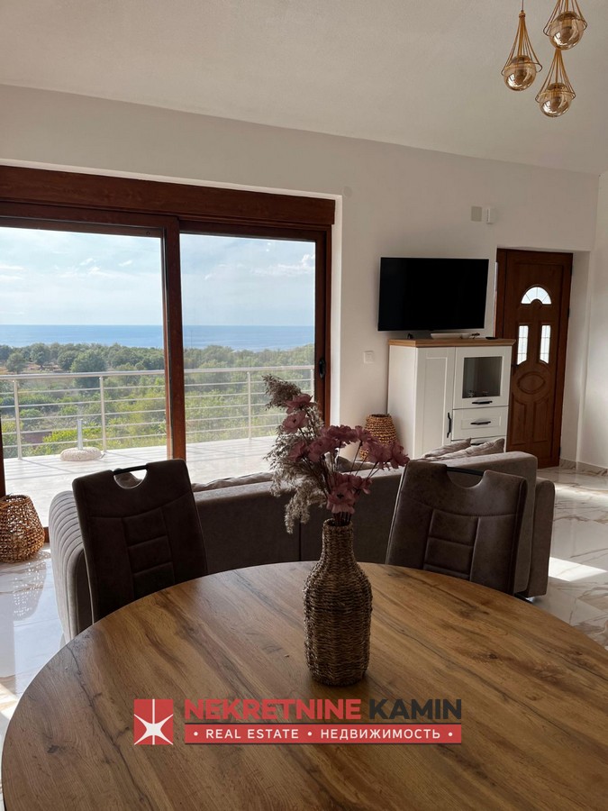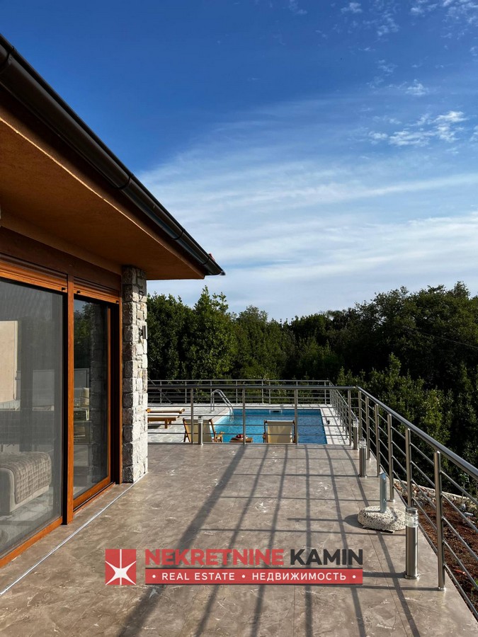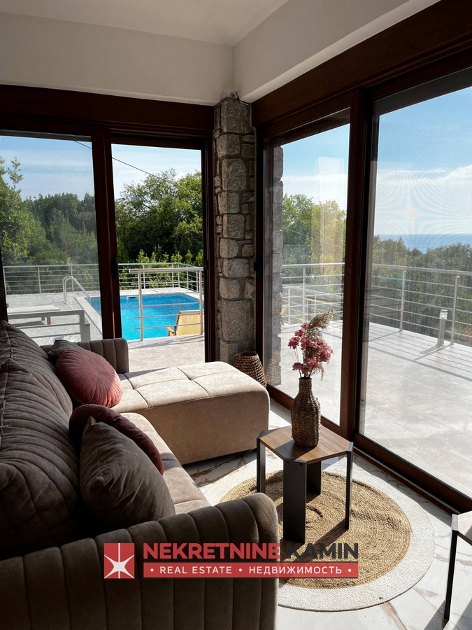 Satoji se od hodnika, dnevne sobe sa kuhinjom i trpezarijom, spavaće sobe, kupatila i terase sa bazenom sa kog se pruža prelijep pogled na more.