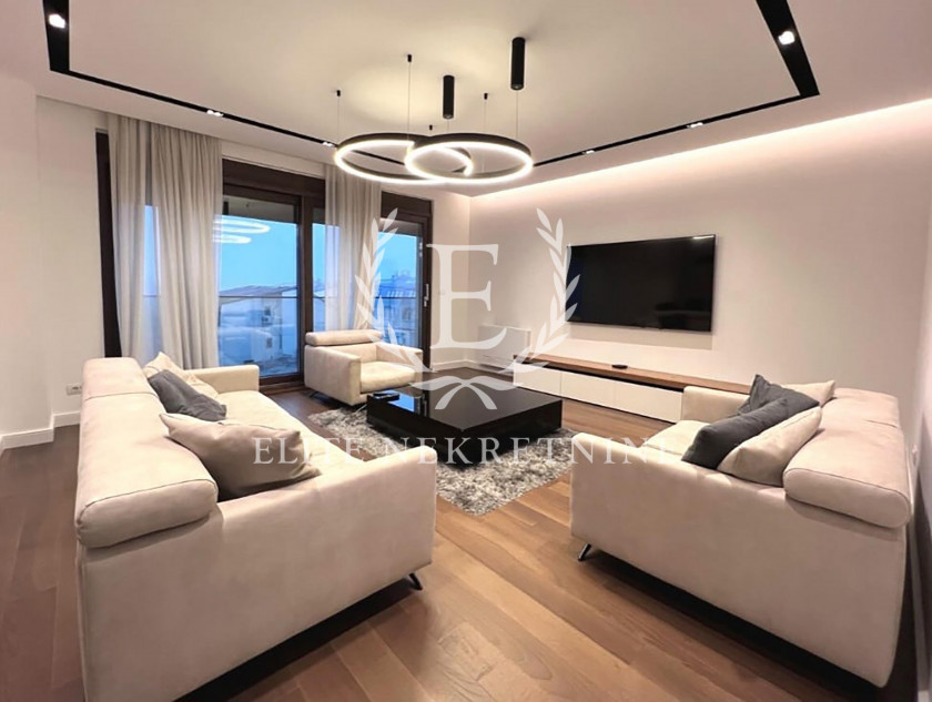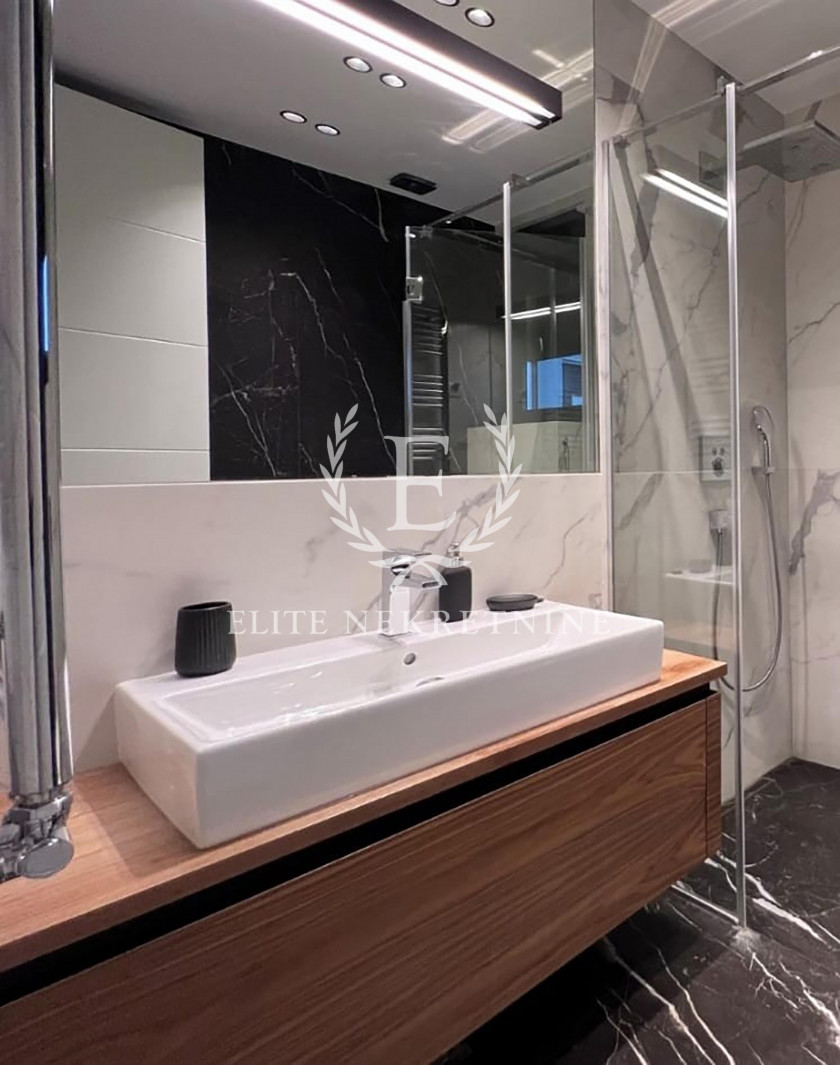 Stan je luksuzno opremljen, sa pažljivo biranim materijalima i detaljima, pružajući osećaj udobnosti i elegancije.