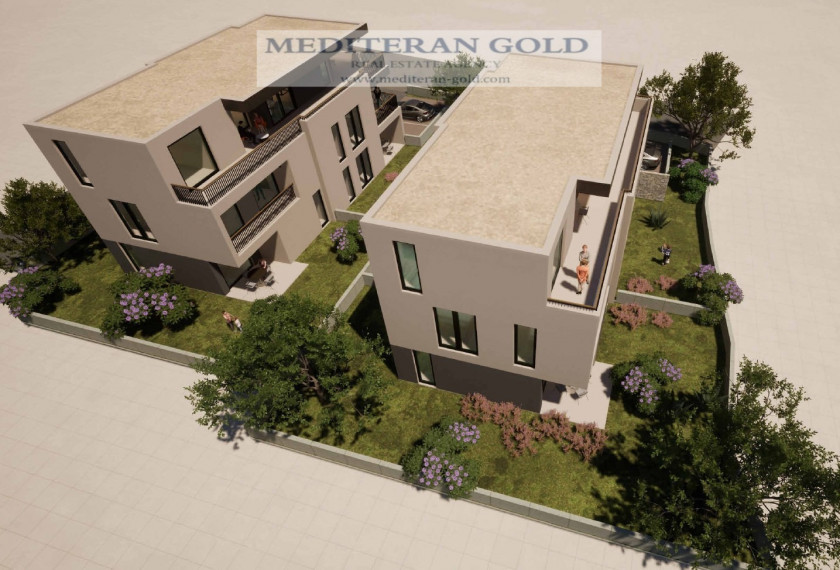 Opis: U prodaji moderna novogradnja vrhunske kvalitete i opreme, pogodna za obiteljski život ili investiciju, na atraktivnoj lokaciji u Kaštel Novom, Rudine. Smještena u mirnoj ulici u blizini svih ključnih sadržaja, projektirana s naglaskom na kvalitetu, udobnost i suvremeni stil života. Projekt se sastoji od manjih stambenih zgrada, svaka s po dva kata, što osigurava visoku razinu privatnosti i komfora stanovanja. Luksuzan standard gradnje i moderna arhitektura, mirna lokacija, odlična prometna povezanost. Svaka zgrada obuhvaća četiri funkcionalno raspoređena stana. Svi stanovi imaju pogled na more. Stanovi su dizajnirani s naglaskom na funkcionalnost, suvremen stil i maksimalno iskorištenje prirodnog svjetla i nude najviši standard opreme: aluminijska stolarija s troslojnim staklom, električne rolete, podno grijanje, inverter klima uređaji, luksuzne keramičke pločice i opremu provjerenih brendova.Ovaj projekt donosi spoj elegancije, udobnosti i dugotrajne kvalitete. Predviđeno useljenje 12/2027.godine. Iz ponude izdvajamo: trosoban i troetažan stan, položen na prizemlju, prvom i drugom katu, ukupne površine od 162m2, cijena je 562.500€.