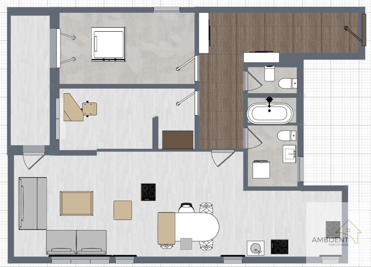 U ponudi je dvosoban stan ukupne površine 78.07 m2 u kvalitetnoj novogradnji u Pančevu, naselje Margita, kupovina direktno od investitora. Stan se odlikuje odlično organizovanim rasporedom prostorija i funkcionalnim korišćenjem svakog kvadrata; sastoji se od prostranog dnevnog boravka sa kuhinjom i trpezarijom, dve spavaće sobe, kupatila,wc,ulaznog hodnika,hodnika i terase.
