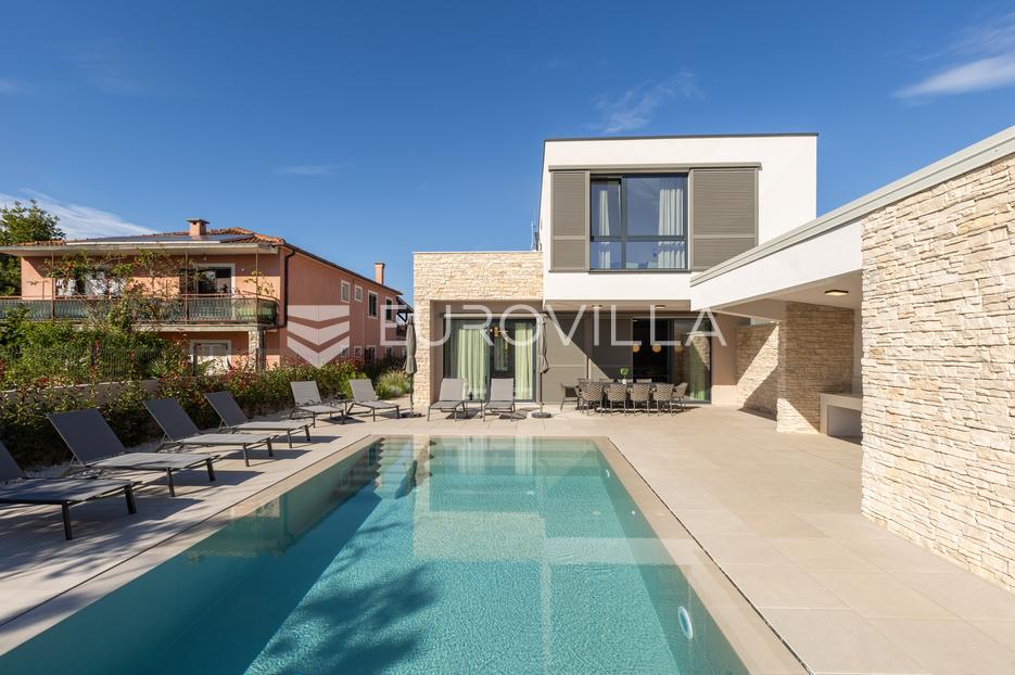 Istra, Umag, prostrana moderna kuća s kamenim detaljima i grijanim bazenom