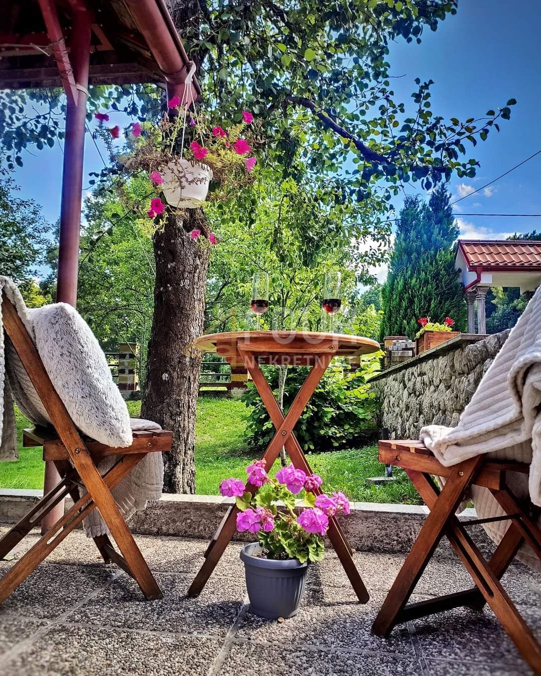 Vanjski prostor pruža obilje sadržaja – zatvoreni prostor za jacuzzi, jog za boćanje, roštilj, popločeno dvorište s fontanom i bunarom, stvarajući oazu za opuštanje i druženja. Na imanju se nalazi i manja kućica od cca 16m2, trenutno korištena kao spremište, a s puno mogućnosti za prenamjenu. Dodatno, započeta je gradnja još jedne kuće s prizemljem tlocrtne površine 10x10m, idealna za A-frame kuću ili drugi projekt po želji. Uz centralno grijanje na pelete, drvenu stolariju, gospodarski objekt, kotlovnicu, drvarnicu i garažu, ovo imanje nudi obilje potencijala. Okruženo čistinom i livadama, predstavlja savršeno utočište za obiteljski život ili turističku investiciju....