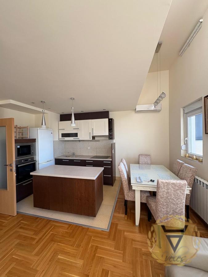 Prednost blizine velikog broja linija javnog gradskog saobraćaja. Stan po strukturi četvorosoban, poseduje tri prostrane spavaće sobe, dnevni boravak sa izuzetno funkcionalnom kuhinjom, dva kupatila i veliku terasu sa perfektnim pogledom.