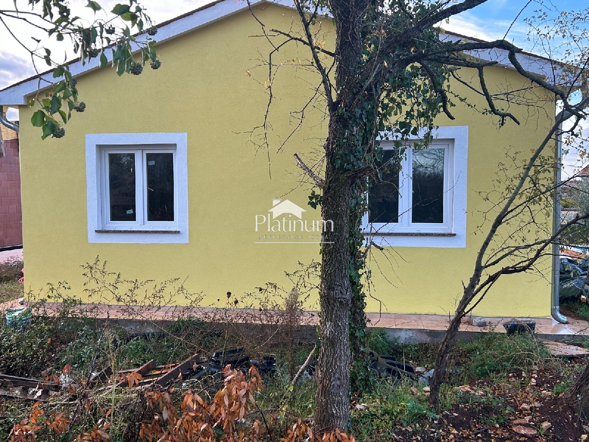 Opis: U Čabrunićima, prodaje se ova lijepa prizemnica koja se sastoji od dnevnog boravka s kuhinjom i blagovaonom (iz kojih se izlazi na natkrivenu terasu 9m2), dvije spavaće sobe i kupatila.