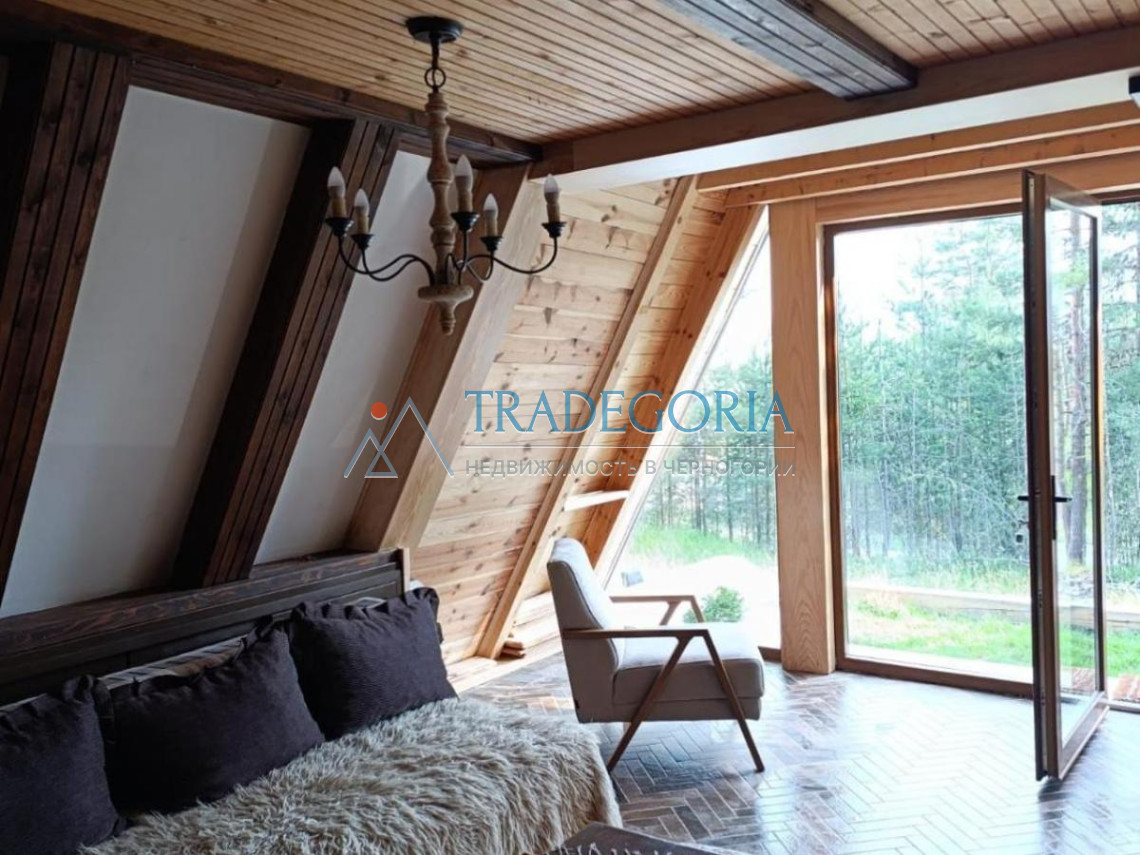 Opis: OpisPravna kuća na prostranom placu na Žabljaku, Borje Površina kuće je 82 m2 Površina zemljišta: 1882 m2 Struktura kuće U prizemlju se nalazi dnevna soba, kuhinja, kupatilo i prostrana terasa. Na drugom spratu se nalazi spavaća soba. Unutrašnje stepenište. Kuća ima kamin i centralno grejanje na struju. Struja, voda, kanalizacija, septička jama. Kuća je potpuno opremljena i spremna za useljenje i izdavanje. Odlično za dnevni iznajmljivanje. Dobar asfaltni put. Uvek očišćen zimi. Centar Žabljaka udaljen je 4900 metara. Pogled na šumu, planine.