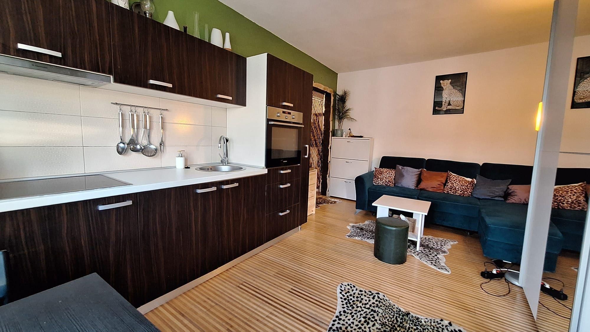 Namješten i kompaktan jednosoban stan površine 30 m² nalazi se na četvrtom katu zgrade sagrađene 1960-ih godina.