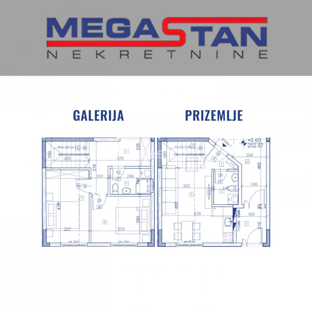 U pitanju je 2.5 stan koji se prostire na dve etaže (dupleks), prizemlje i galerija čija visina do plafona iznosi 2,4m.