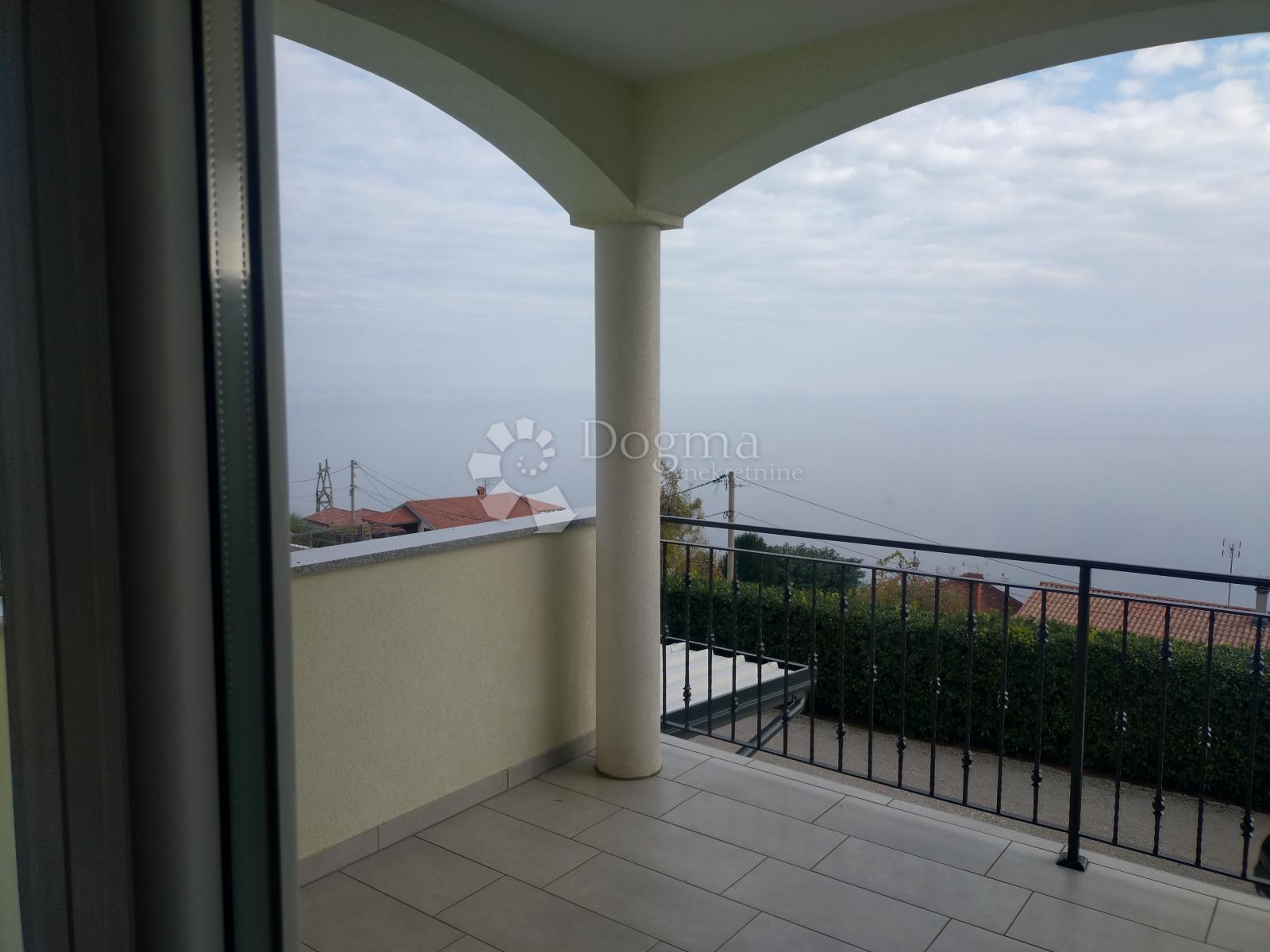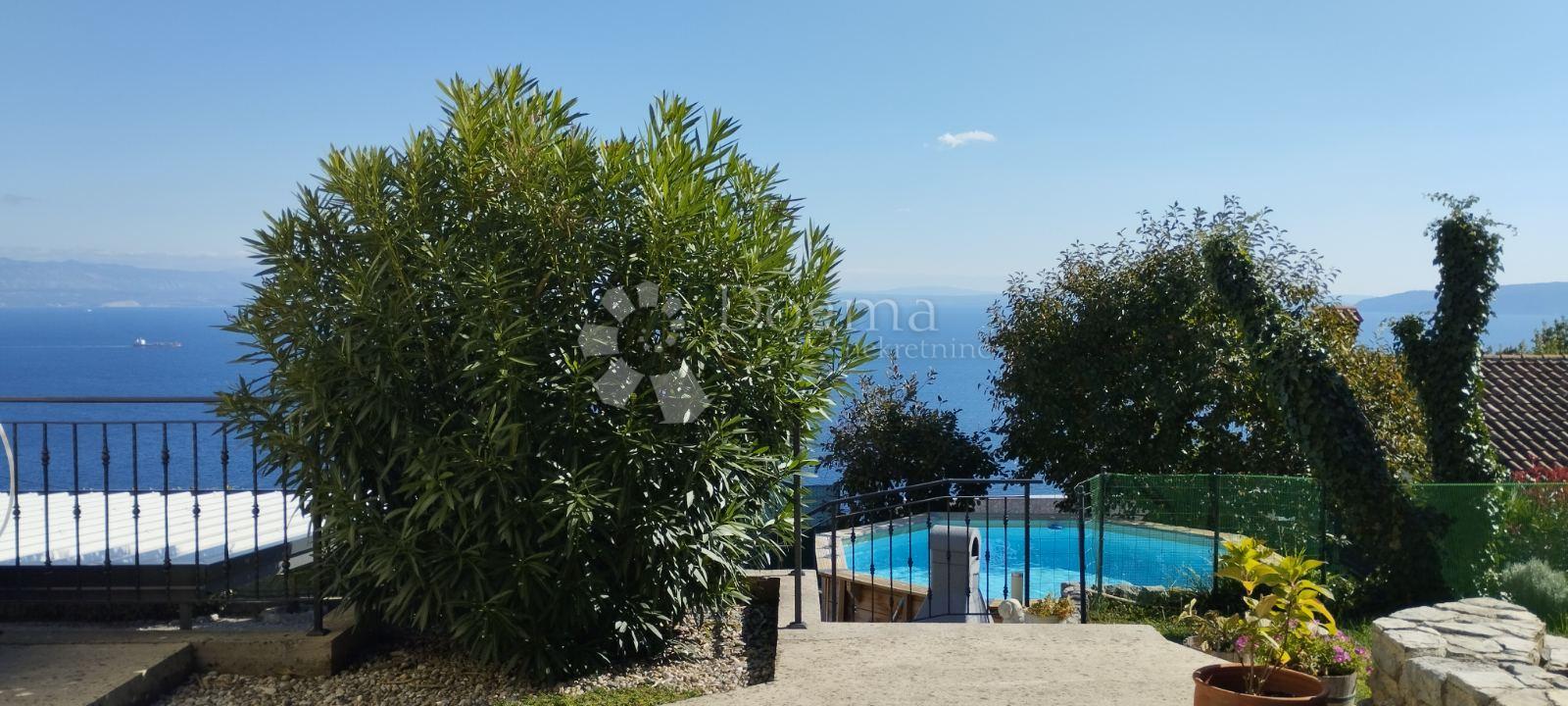 Opis: Lovran-Liganj prekrasna kuća s panoramskim pogledom na more.Nekretnina se nalazi u mjestu iznad Lovrana,na mirnoj lokaciji s lijepom okućnicom.Sastoji se od tri stambene jedinice.Prostrani stan na drugom kartu,te dva apartmana na prvom katu.U prizemlju je garaža za dva automobila,kotlovnica,manji fitness i studio apartman od 20m2.Prostrana ograđena okućnica za više vozila,jedan dio je i natkriven.Unutar uređenog vrta je roštilj s prostorom za sjedenje,te montažni bazen.