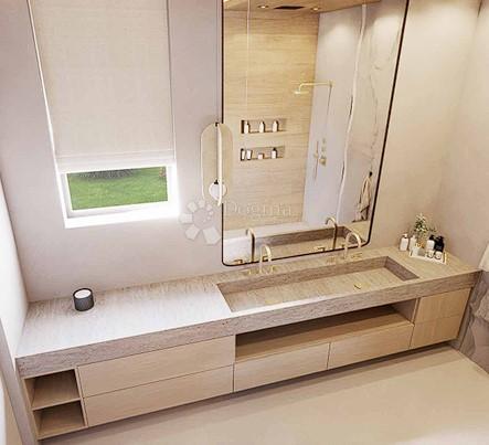 Prizemlje nudi prostrani dnevni boravak koji se elegantno nastavlja u modernu kuhinju i blagovaonicu, stvarajući idealan prostor za obiteljska okupljanja i druženja. Na ovom nivou nalazi se i jedna spavaća soba s vlastitom kupaonicom, savršena za goste ili kao luksuzni primarni apartman. Dodatni sadržaji uključuju pretprostor saune, luksuznu saunu, potpuno opremljen fitness, sanitarije, praonicu, praktičnu ostavu i vanjsko spremište....