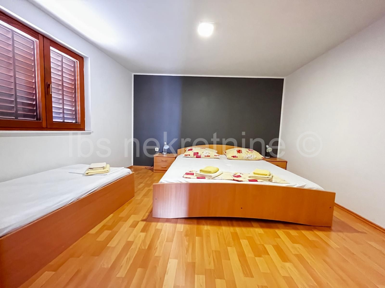 kuća koja se prostire na tri etaže i sadrži četiri potpuno opremljena apartmana. Smještena je u tihom okruženju s prekrasnim pogledom na more.