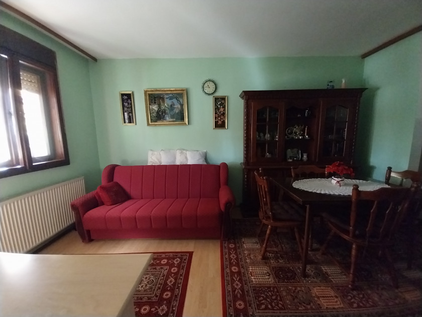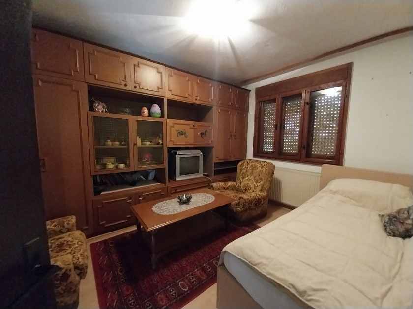 Opis: Kuca se nalazi na sredini naselja, u lepom okruzenju.Plac ima izlaz na dve ulice, a obzirom na velicinu placa moguca je izgradnja poslovnog objekta za vise namena: igraonica,vrtic, proizvodna hala, radionica...Ravan je, ogradjen, zasadjen svim vrstama voca, ukrasnim biljkama i drvecem. Letnjikovac, rostilj, bunar... Kuca je tvrda gradnja-prizemlje i potkrovlje. Na prizemlju je velika terasa, ulazni hol, dnevni boravak sa kuhinjom, spavaca soba i kupatilo. Spoljasnje stepenice za potkrovlje koje cine dve sobe, terasa i ostava. Grejanje radijatorsko sa kotlom na struju. Moguce prikljuciti gas. Gradska i bunarska voda, kanalizacija. Prodaje se kompletno namestena. Uknjizena, brzo useljiva.