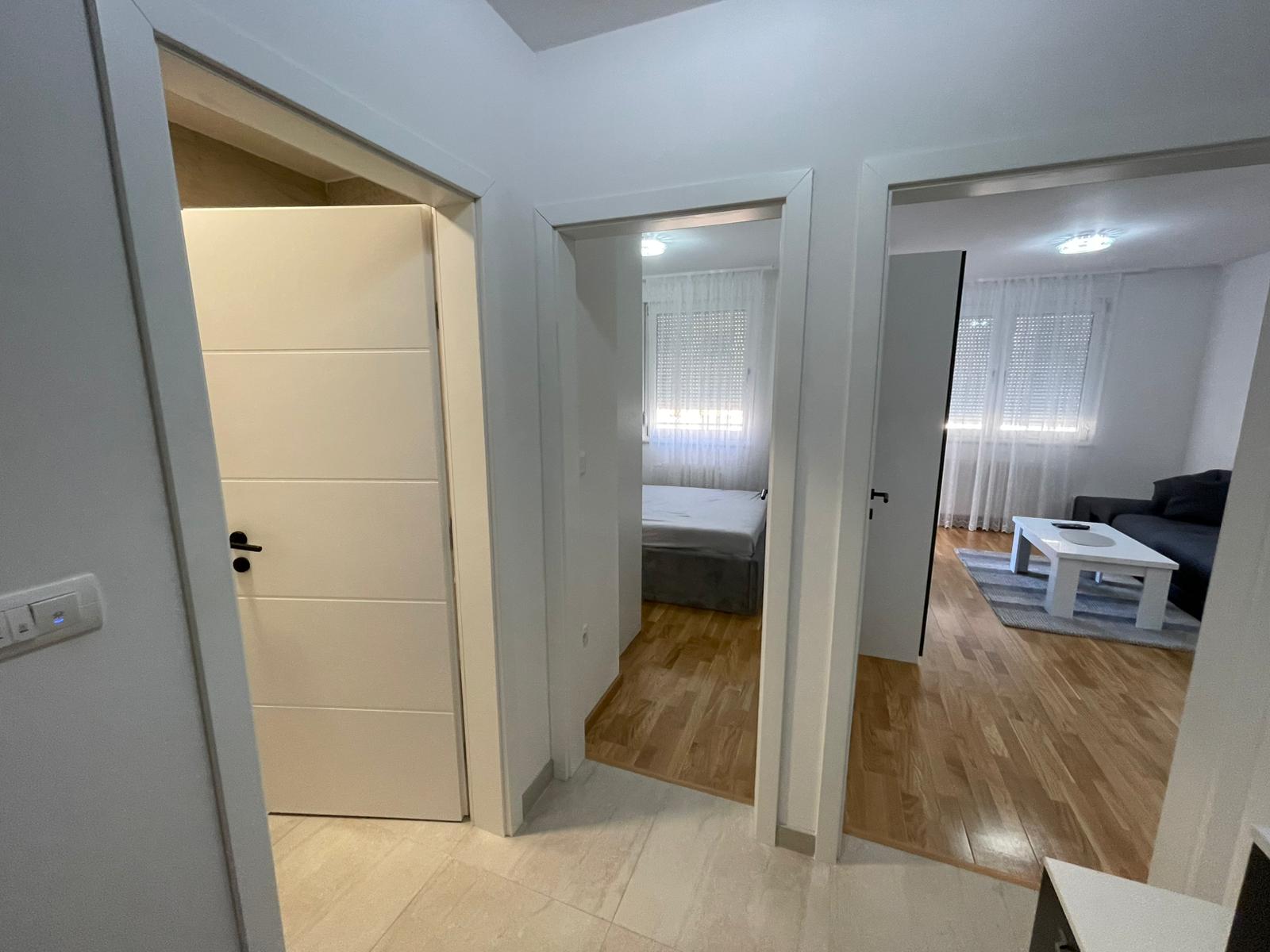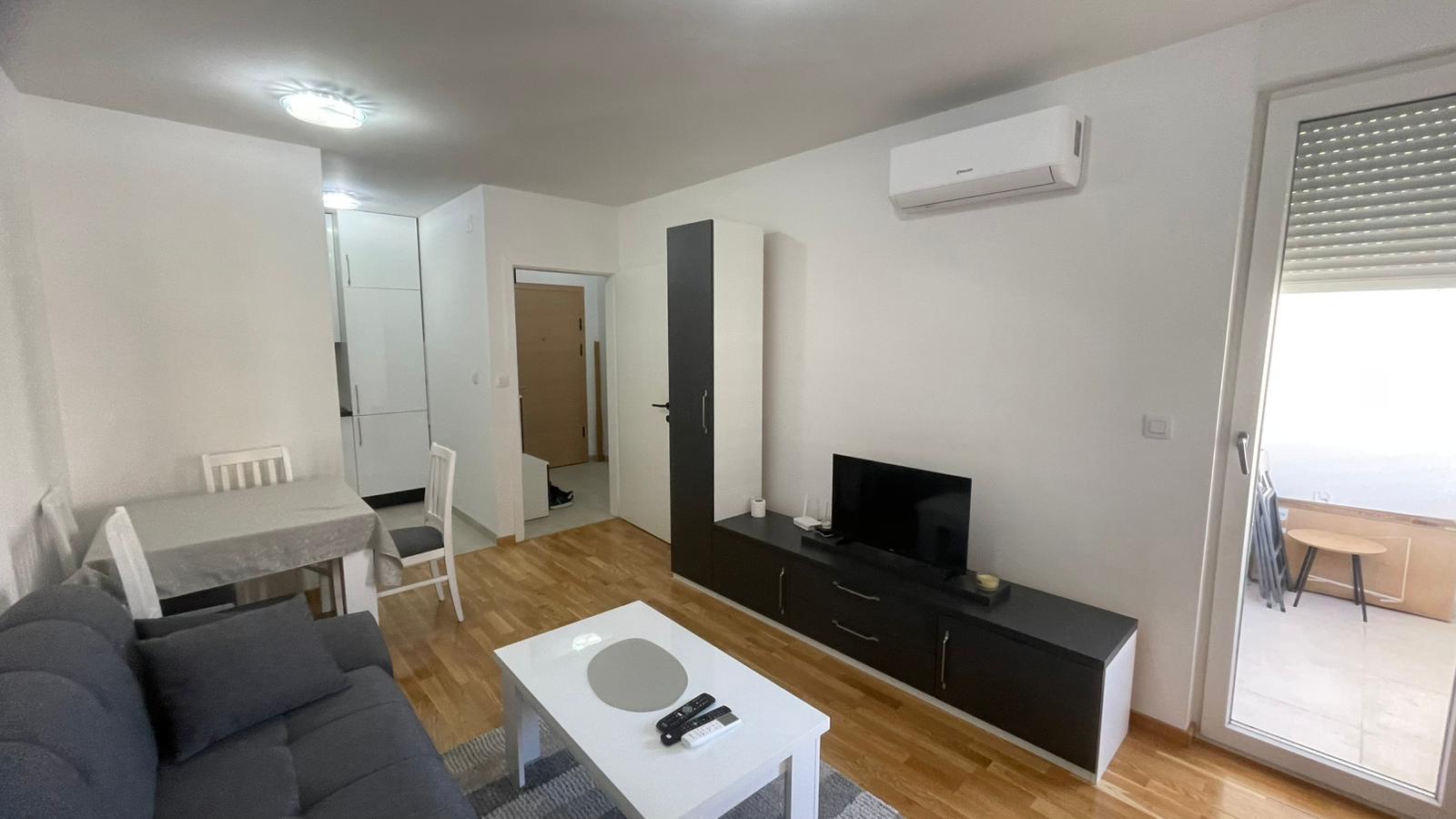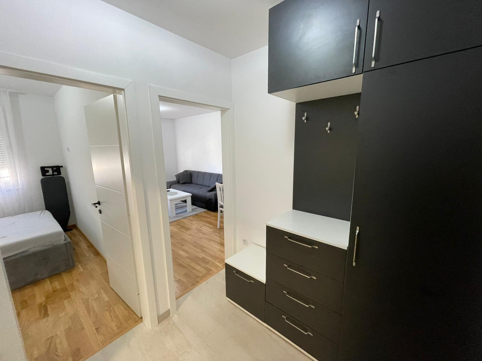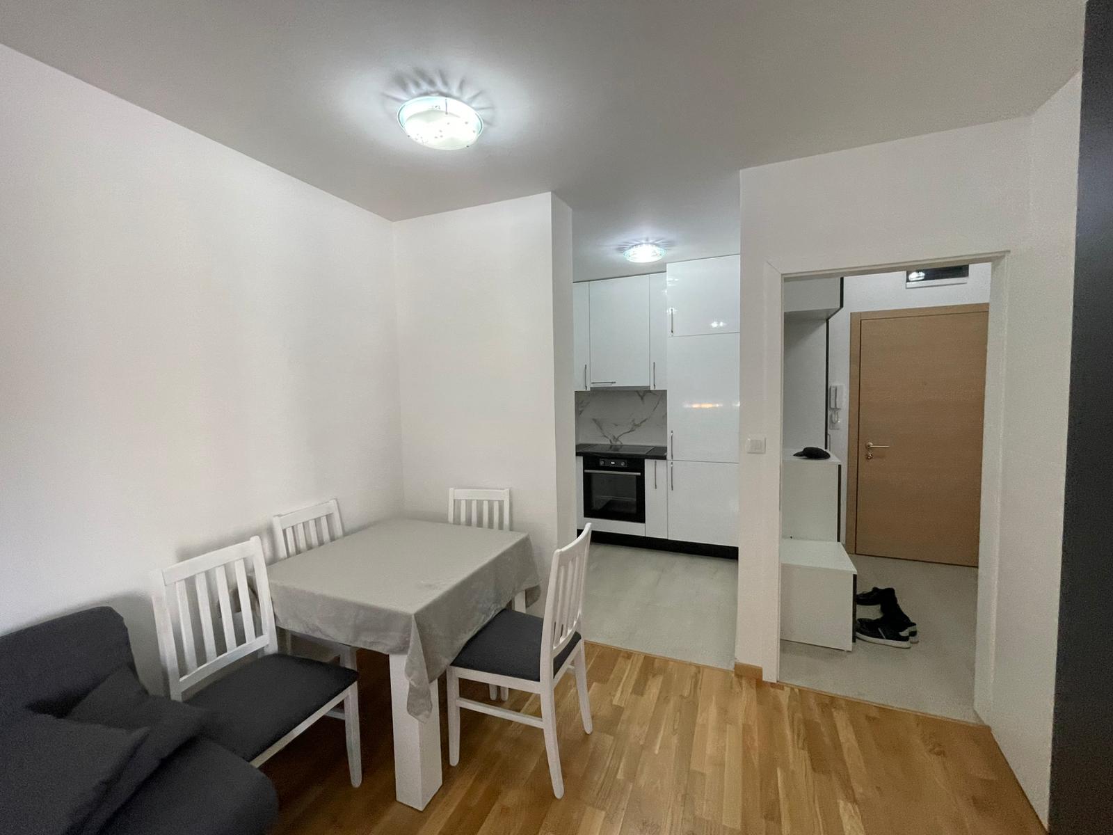 Iznajmljuje se na duži vremenski period (minimalno 12 mjeseci) dvosoban stan ukupne površine 38 m2 na V spratu (nije zadnji) novoizgrađenog stambenog objekta koji posjeduje lift.