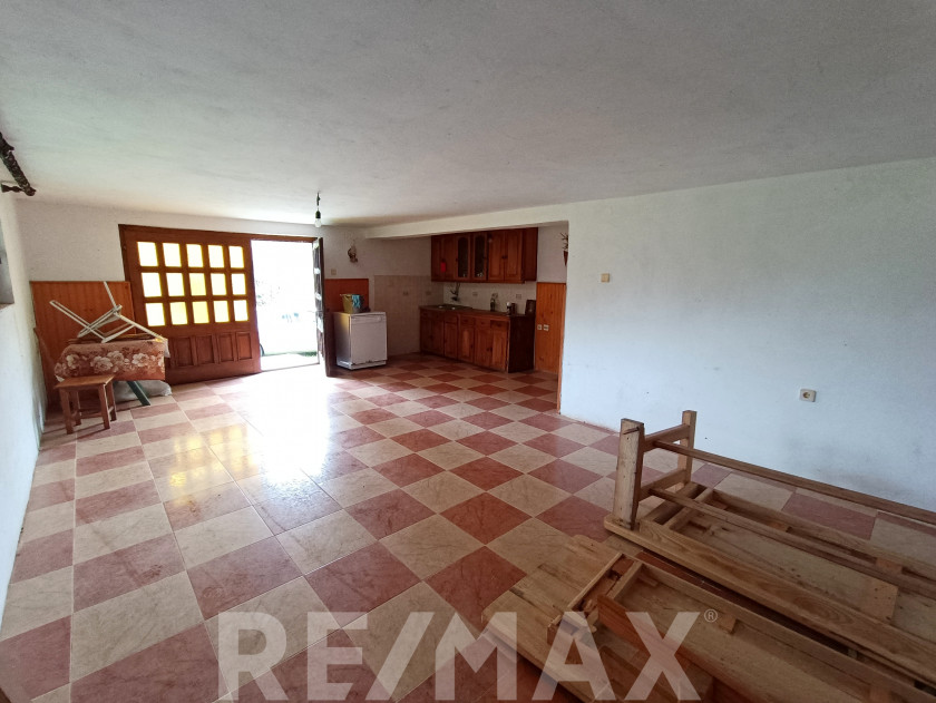 Prizemlje čini jedna velika prostorija sa kuhinjom – savršena za porodična okupljanja i proslave. Tu se nalaze i spavaća soba, ostava i kupatilo.