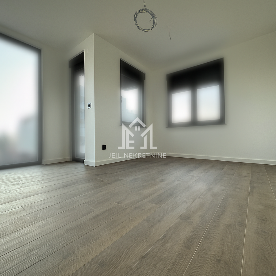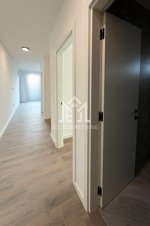 Stan ima odličan raspored: iz prostranog hodnika (predviđen prostor za ugradni plakar) desno se nalaze kupatilo, prva spavaća soba, druga spavaća soba, a zatim se ulazi u komforan dnevni boravak povezan sa kuhinjom i trpezarijom, sa izlaskom na terasu.