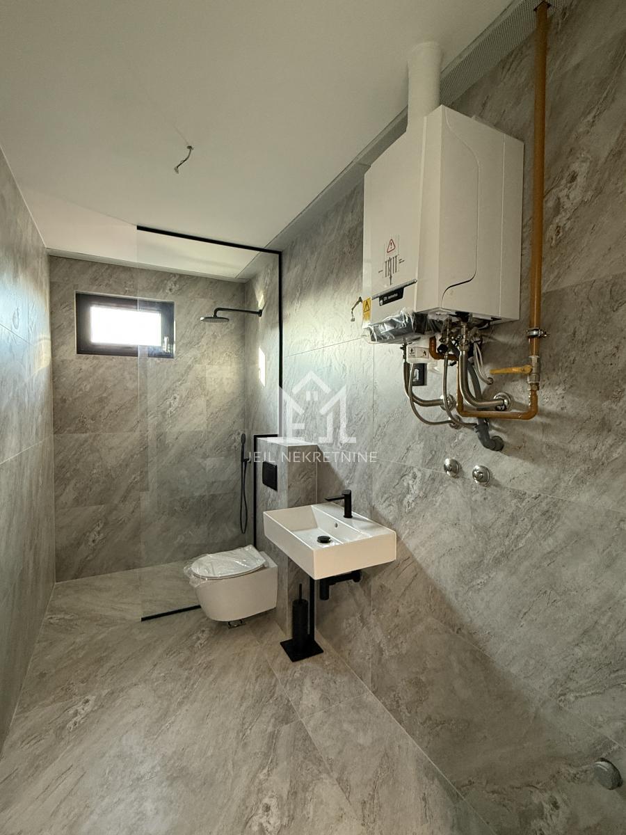 Na prodaju je moderno uređen, odmah useljiv dvoiposoban stan na drugom spratu kvalitetne novogradnje na Telepu. Stan je uknjižen na 50 m², realne površine oko 52 m², a pripada mu i velika privatna krovna terasa od oko 60 m² sa otvorenim pogledom na Frušku goru.
