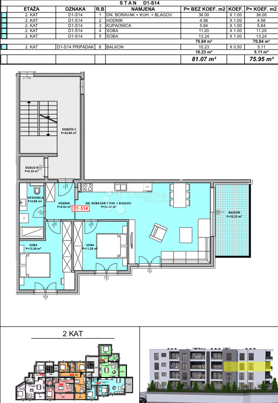 Stan se sastoji od prostranog dnevnog boravka povezanog s kuhinjom i blagovaonicom, dvije udobne spavaće sobe, modernog kupatila i hodnika.