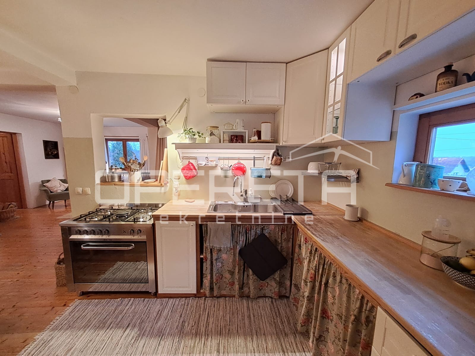 Opis: PRODAJA, SAMOSTOJEĆA KUĆA, Velika Gorica, Gudci 147m2Na parceli od 1007m2 odlična, održavana kuća s vrtom i velikom okućnicom. Kuća se prostire u prizemlju na 92m2 kroz "open soace" dnevni boravak s blagovaonicom i kuhinjom, dvije prostrane sobe, wc s vešerajem i izlaz preko terase na vrt iza kuće. Na katu imamo 2 sobe i kupaonicu s wc-om na 45m2.Uredne dokumentacije i legalnosti, dostupna odmah. Vrlo lijepo uređena odiše posebnim šarmom i ljupkošću. Eko frendly s drvenom stolarijom, brodskim podovima i peći na drva. Vrlo funkcionalna, topla, odličnog rasporeda i s puno danjeg svjetla.Kvalitetna gradnja s armirano-betonskim cirklažama i međukatnom konstrukcijom, čvrsta i bez potrebe za ulaganjima. Na 15 min od Velike Gorice i 20 min od Zagreba. Preporuka!