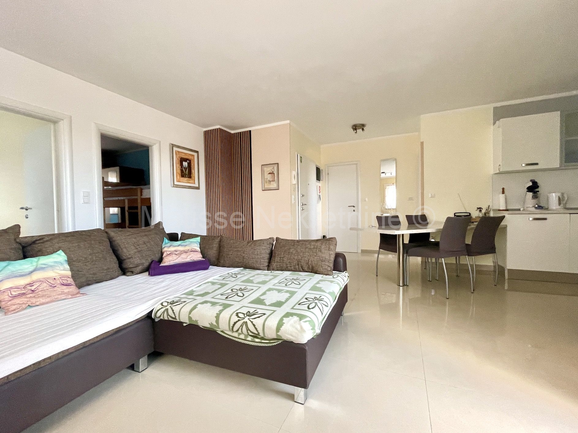 Stan se sastoji od dnevnog boravka, kuhinje, dvije spavaće sobe, kupatila, ostave i terase. Iz open-space prostora gdje se nalaze kuhinja i dnevni boravak se izlazi na terasu, a hodnik vas vodi u spavaće sobe, kupatilo i ostavu. Stan je potpuno namješten, te ima klima uređaj.