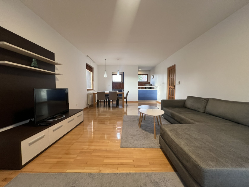Prostorno je funkcionalan, svijetao i prozračan, a sastoji se od: hodnika, tri spavaće sobe, odvojenog toaleta, kupatila, prostranog dnevnog boravka povezanog s trpezarijom i kuhinjom u otvorenom planu i balkona
