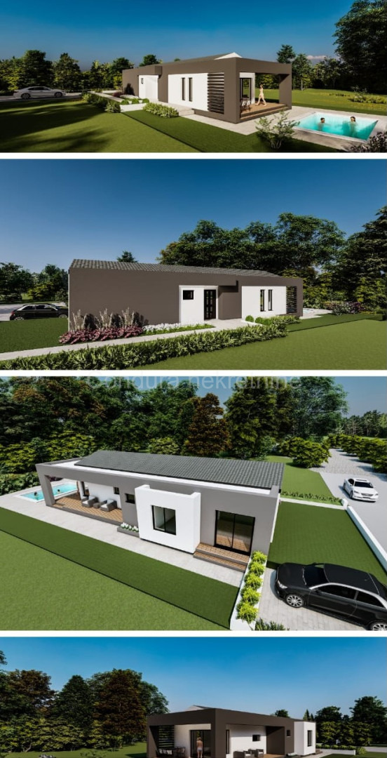 Opis: Prodaje se građevinsko zemljište površine 446 m² s izgrađenim prizemnim objektom u roh-bau fazi površine 98,58 m², te planiranim bazenom od 24 m². Nekretnina se nalazi na mirnoj lokaciji, idealnoj za izgradnju moderne obiteljske kuće ili kuće za odmor.