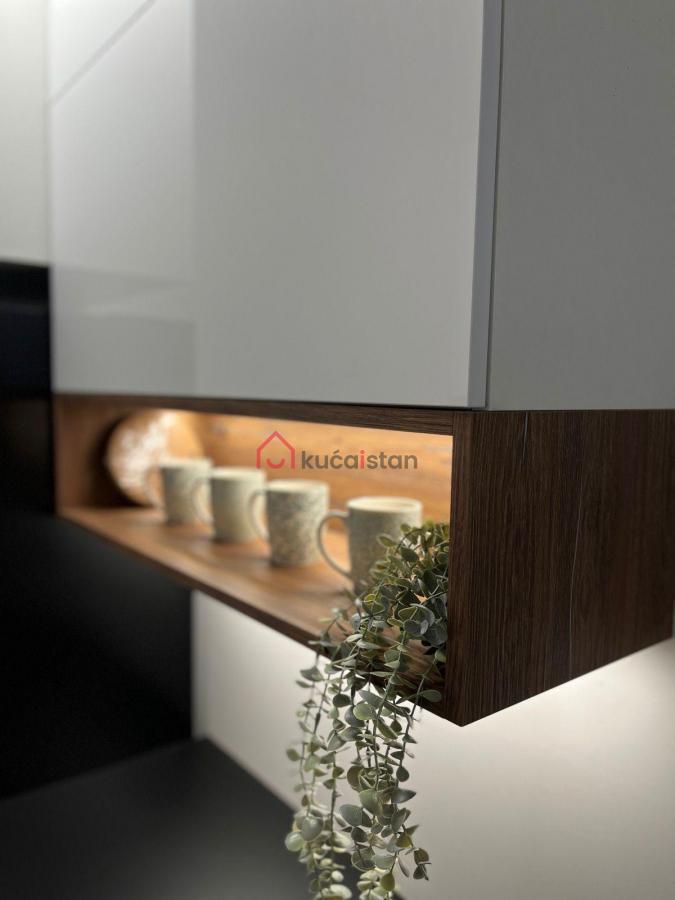 Opremljen je mašinom za sudove i svim neophodnim uređajima za udoban boravak.
