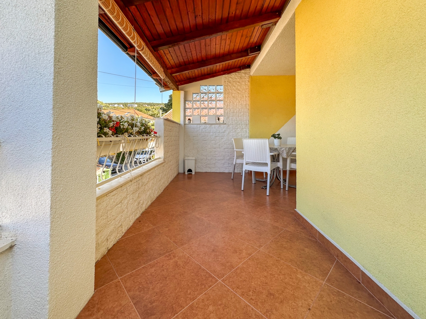 Opis (Engleski): A fully furnished and well-maintained terraced house is available in a highly desirable location in Kostrena, luxury suburb of Rijeka, just a short distance from the sea. With 106 m² of living space, the property is ready to move in and requires no additional investment, making it an excellent choice for family living or as a rental investment. The house is spread over two floors, offering a practical and well-planned layout.The ground floor features three comfortable and spacious bedrooms, providing privacy and relaxation, a bathroom, a hallway, and a convenient storage room. An internal staircase leads to the first floor, where a bright and airy living room connects seamlessly with the kitchen and dining area, along with an additional bathroom and hallway. A charming small loggia adds a cozy spot for enjoying morning coffee, while the large covered terrace on the first floor is perfect for entertaining family and friends or simply relaxing outdoors during warm days....