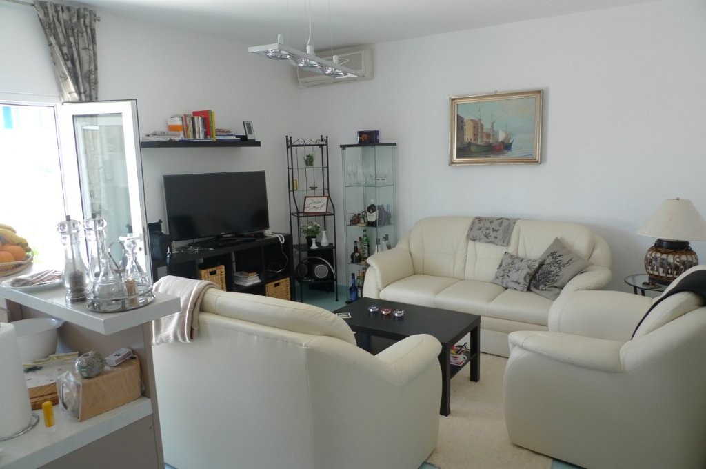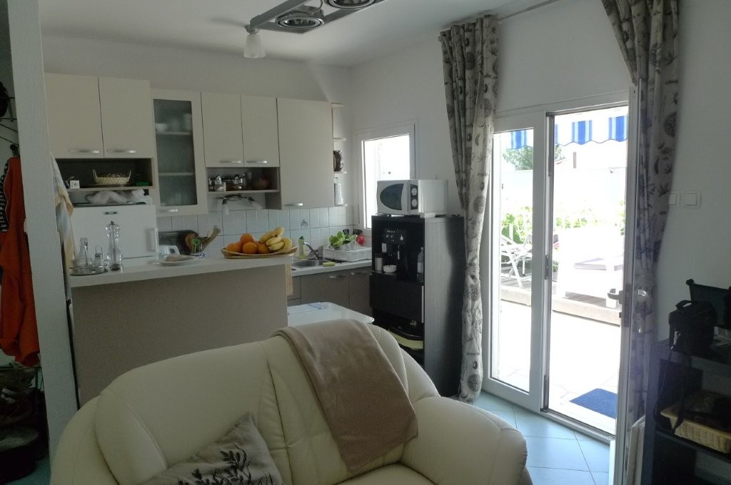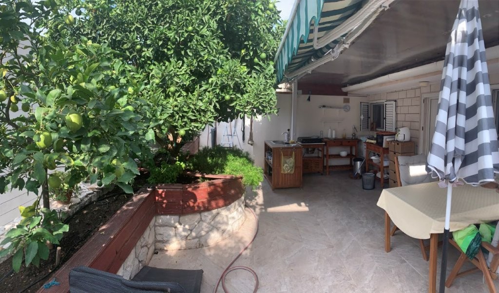 Opis (Engleski): Located in one of the most desirable locations on the island of Čiovo, this house for sale just 30 meters from the sea offers an exceptional opportunity for anyone looking to buy real estate in Croatia near the beach. Situated in peaceful Mavarštica, with the bay and Trogir Diving Center only 100 meters away, it is a perfect choice for sea lovers, families, and investors seeking a holiday home or rental property.The house has two separate apartments, one on each floor, with a total area of 172 m² (80 m² of living space + 92 m² of outdoor space). Each 40 m² apartment is thoughtfully designed for comfort.The ground floor includes a bright living room with kitchen, a bedroom, bathroom, and laundry room. The upper floor offers two bedrooms, a spacious living area, and another bathroom. The property is fully furnished and equipped with modern appliances, air conditioning, and automatic exterior blinds....