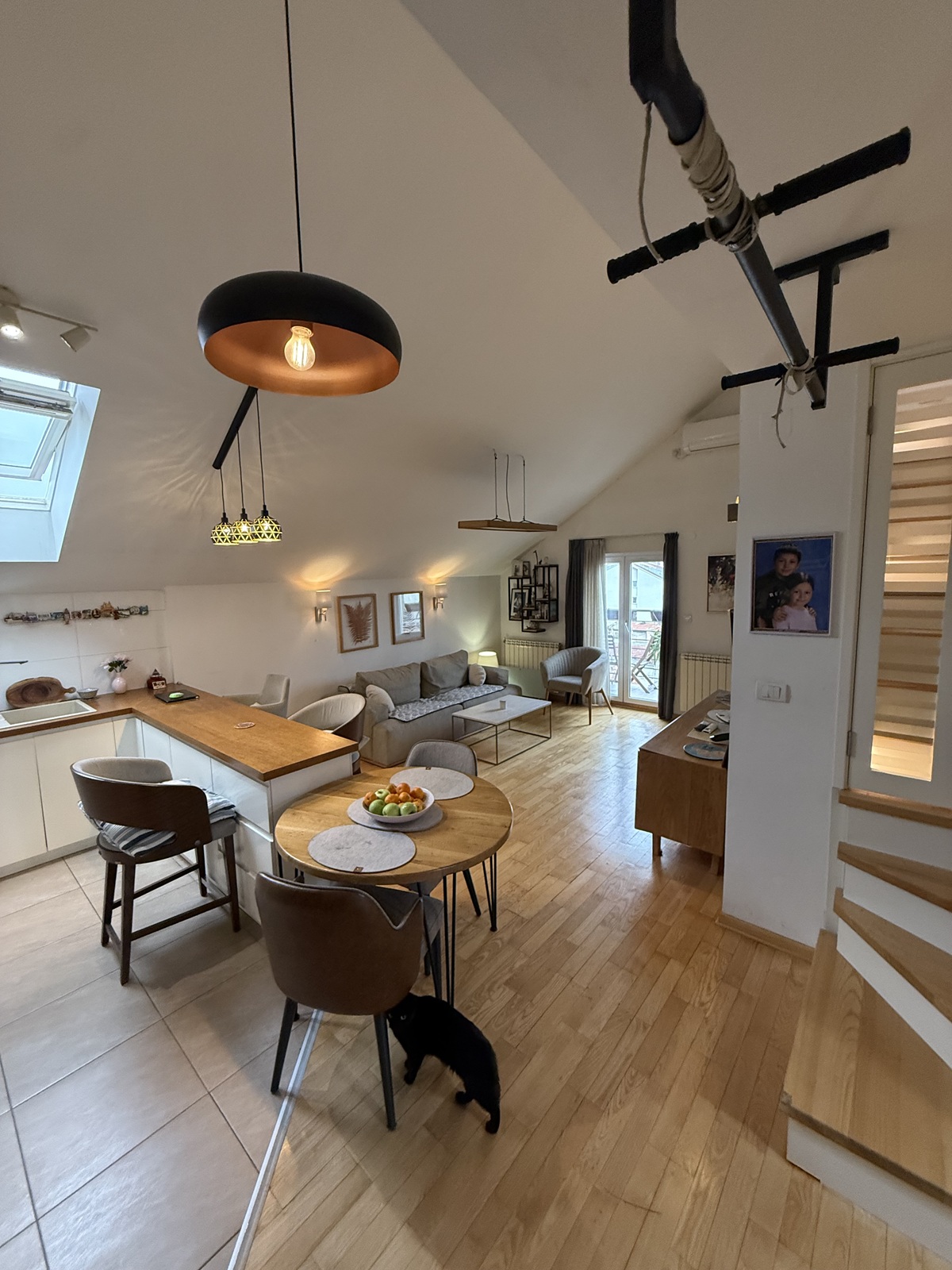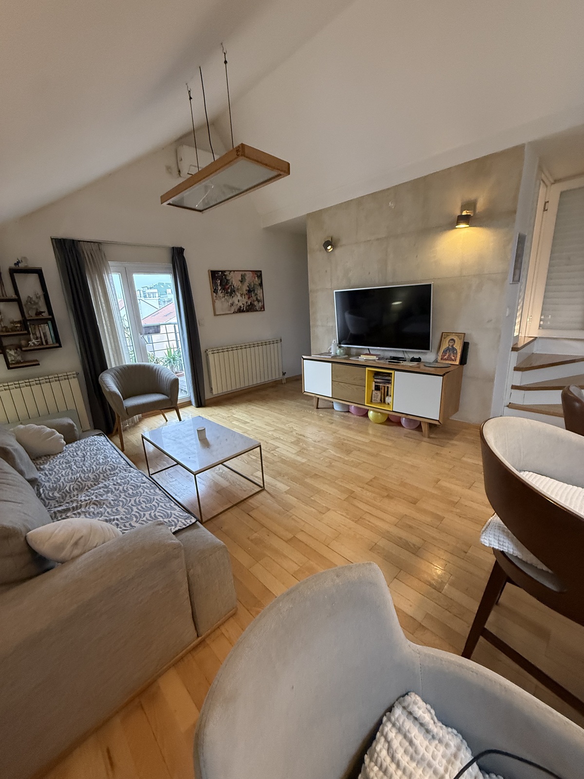 Opis: Na prodaju svetao i kompletno renoviran stan u mirnom delu Palilule na Hadzipopovcu. Nalazi se blizu glavnih saobracajnica, ali je izolovan od buke i okruzen zelenilom, sto pruza prijatan ambijent za stanovanje. Stan je u potpunosti renoviran 2020. godine: zamenjene su sve elektro i vodovodne instalacije, uradjena spoljasnja i unutrasnja izolacija, nova keramika, ugradni plakari i ostava. Dnevni boravak ima izlaz na terasu sa pogledom na dvoriste, kupatilo je moderno uredjeno, a galerija od oko 20 m2, odvojena staklenim vratima i stepenicama, pruza dodatni prostor koji moze sluziti kao radna ili spavaca soba. Ispred zgrade je dostupan parking, a pored ulaza se nalazi prostorija za susenje vesa.